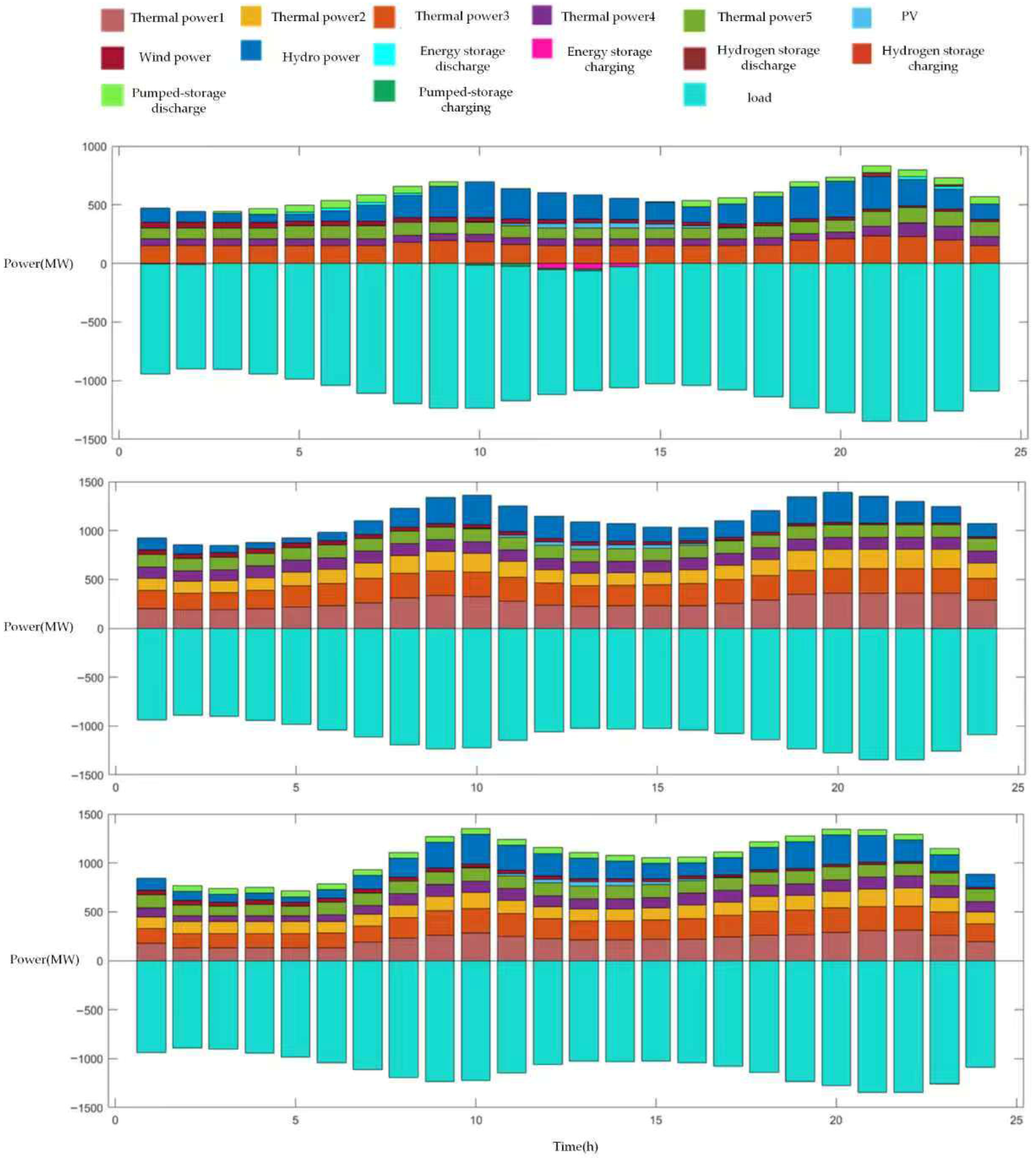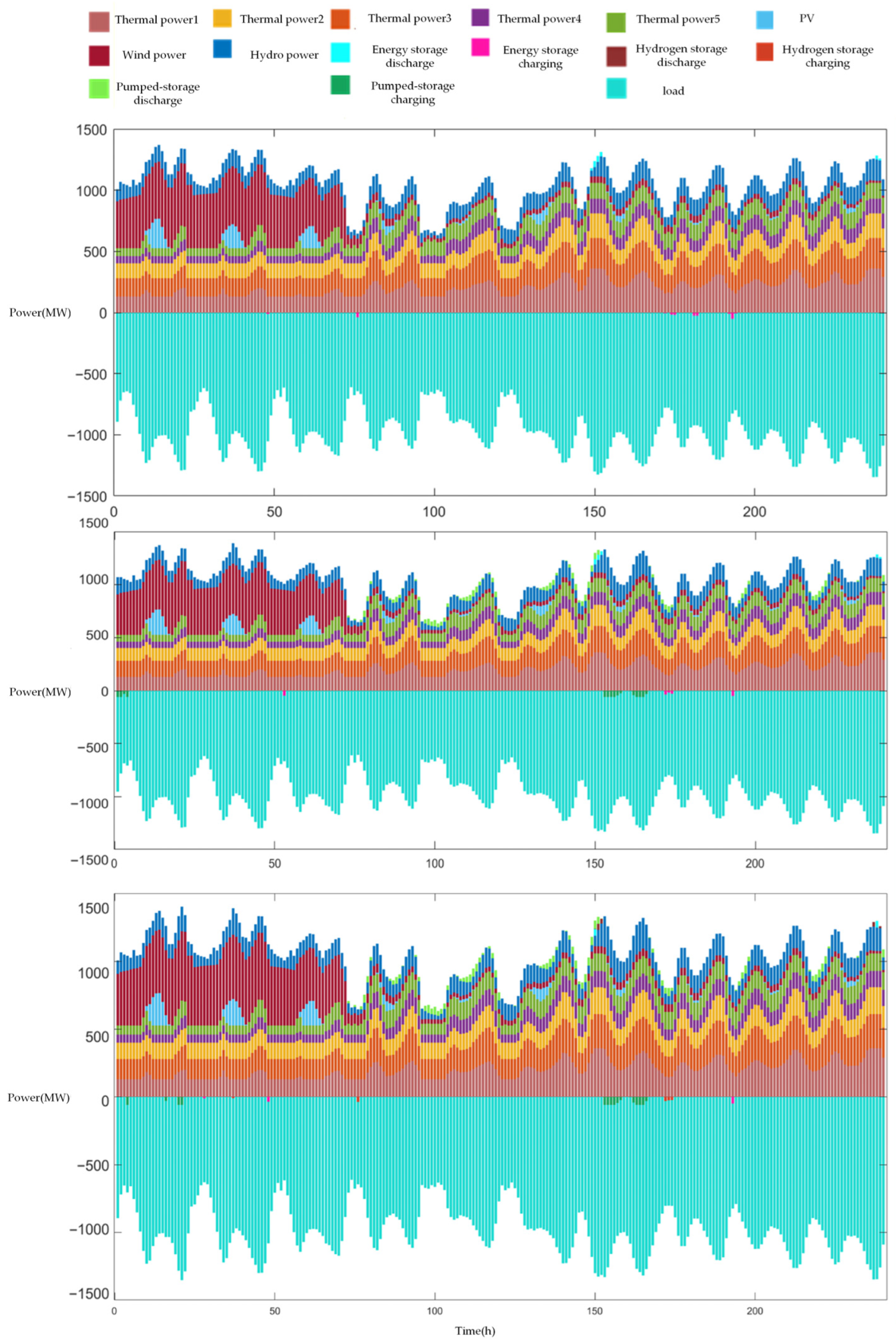 - Scenario 3: Long-term dispatch of integrated wind, solar, hydro, and thermal power generation, considering electrochemical storage, pumped storage hydroelectric plants, and seasonal hydrogen storage.