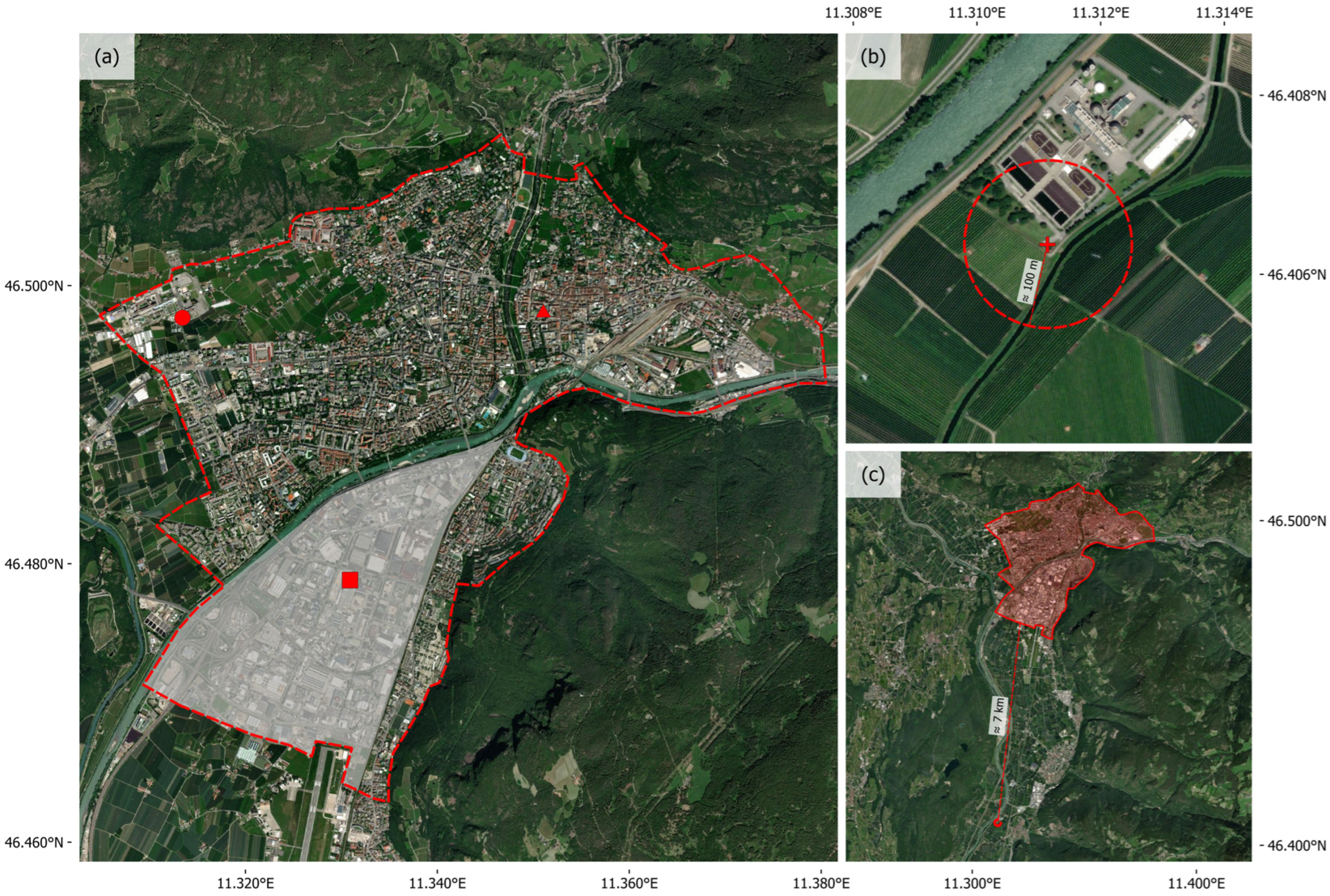 - Provincia Autonoma di Bolzano Alto Adige MapView. Available online: https://mapview.civis.bz.it/ (accessed on 22 December 2025).
