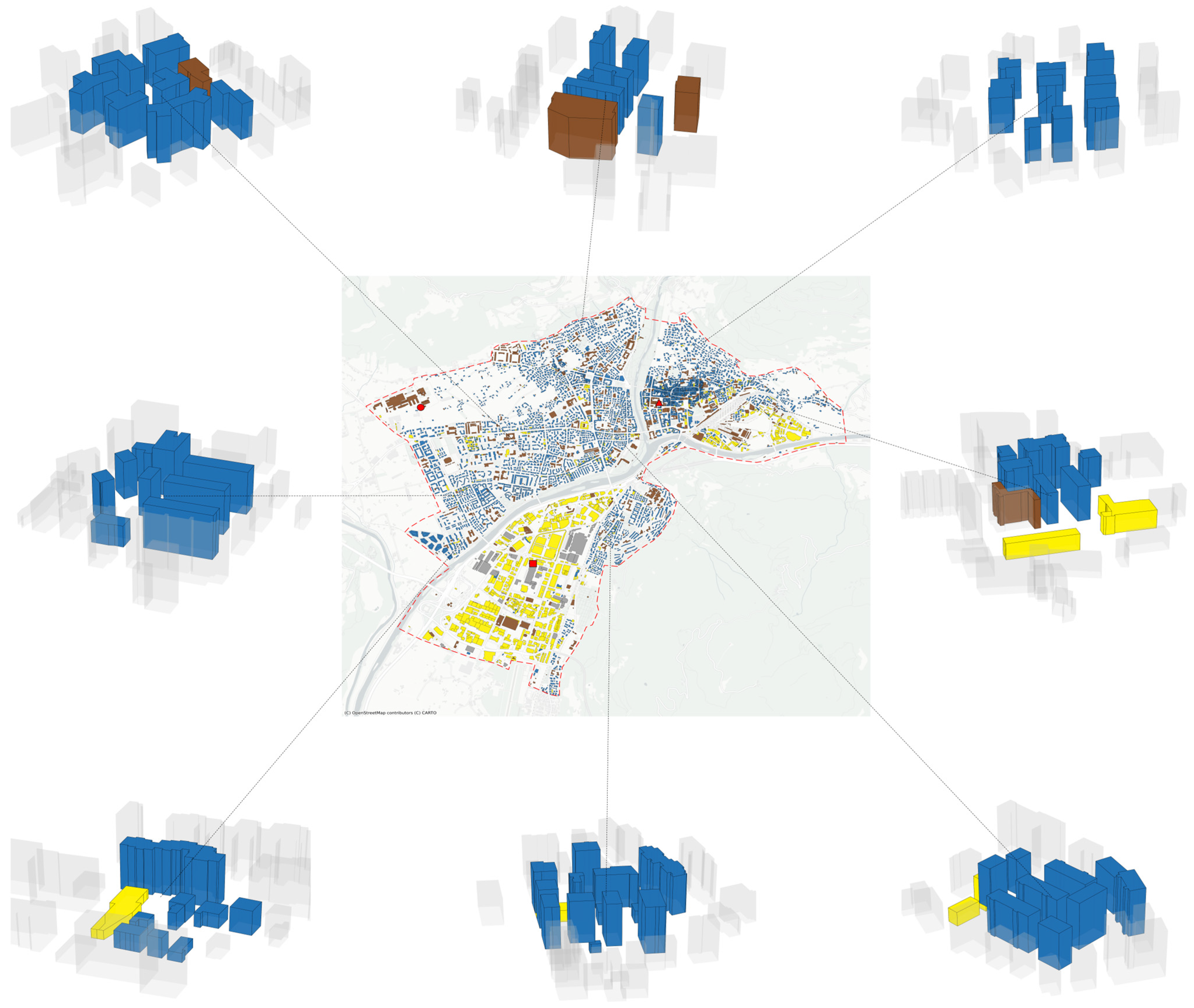 - Mazzarino, P.R.; Finocchiaro, S.; Barbierato, L.; Schiera, D.S.; Bottaccioli, L.; Patti, E. An Automated Tool for Urban Building Energy Modelling: From Sparse Datasets to CityJSON. In Proceedings of the 2024 IEEE International Conference on Environment and Electrical Engineering and 2024 IEEE Industrial and Commercial Power Systems Europe (EEEIC/I&CPS Europe), Rome, Italy, 17–20 June 2024; pp. 1–7. [Google Scholar]
