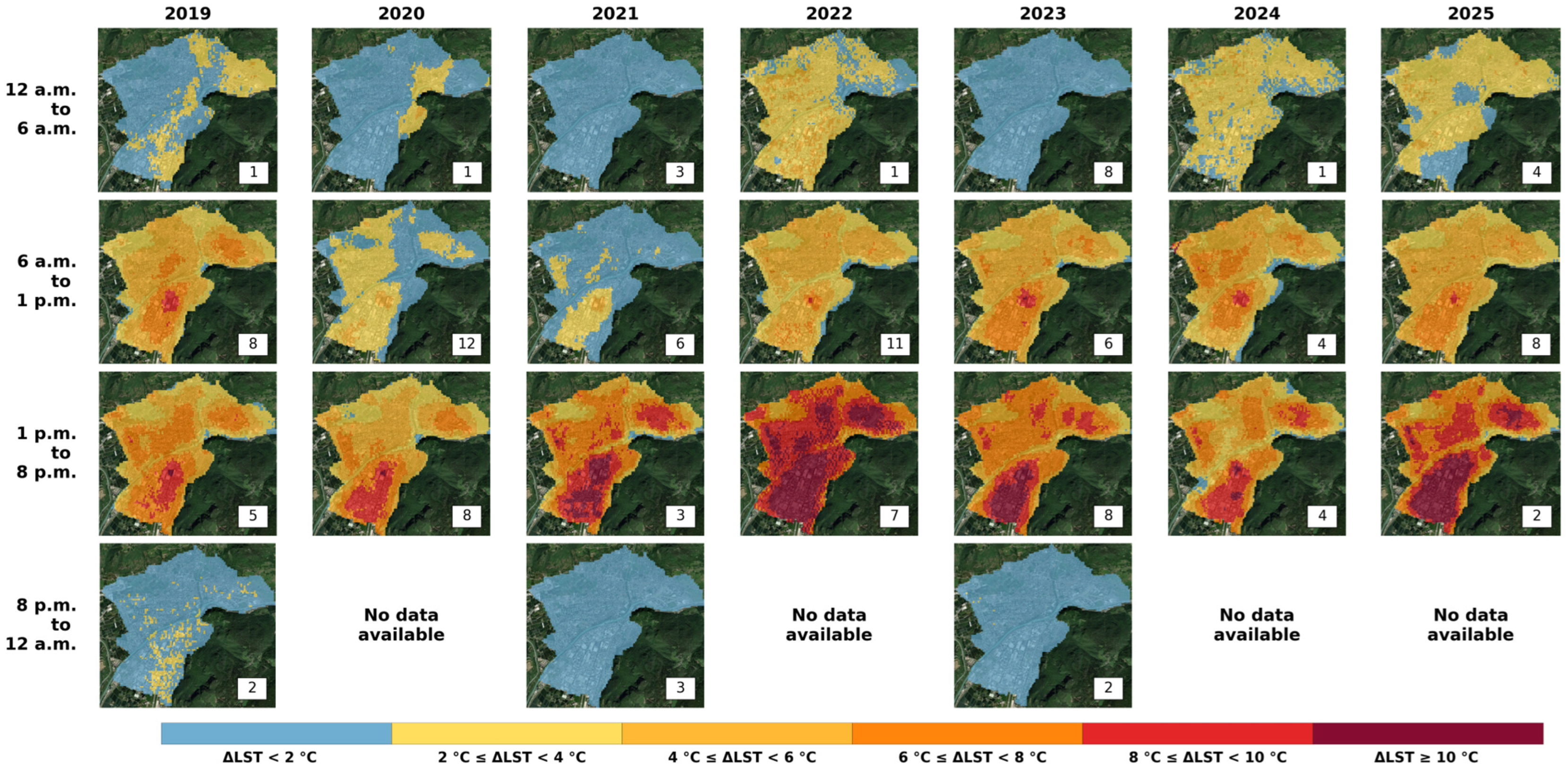 2.2. Satellite Data Processing and UHI Characterization