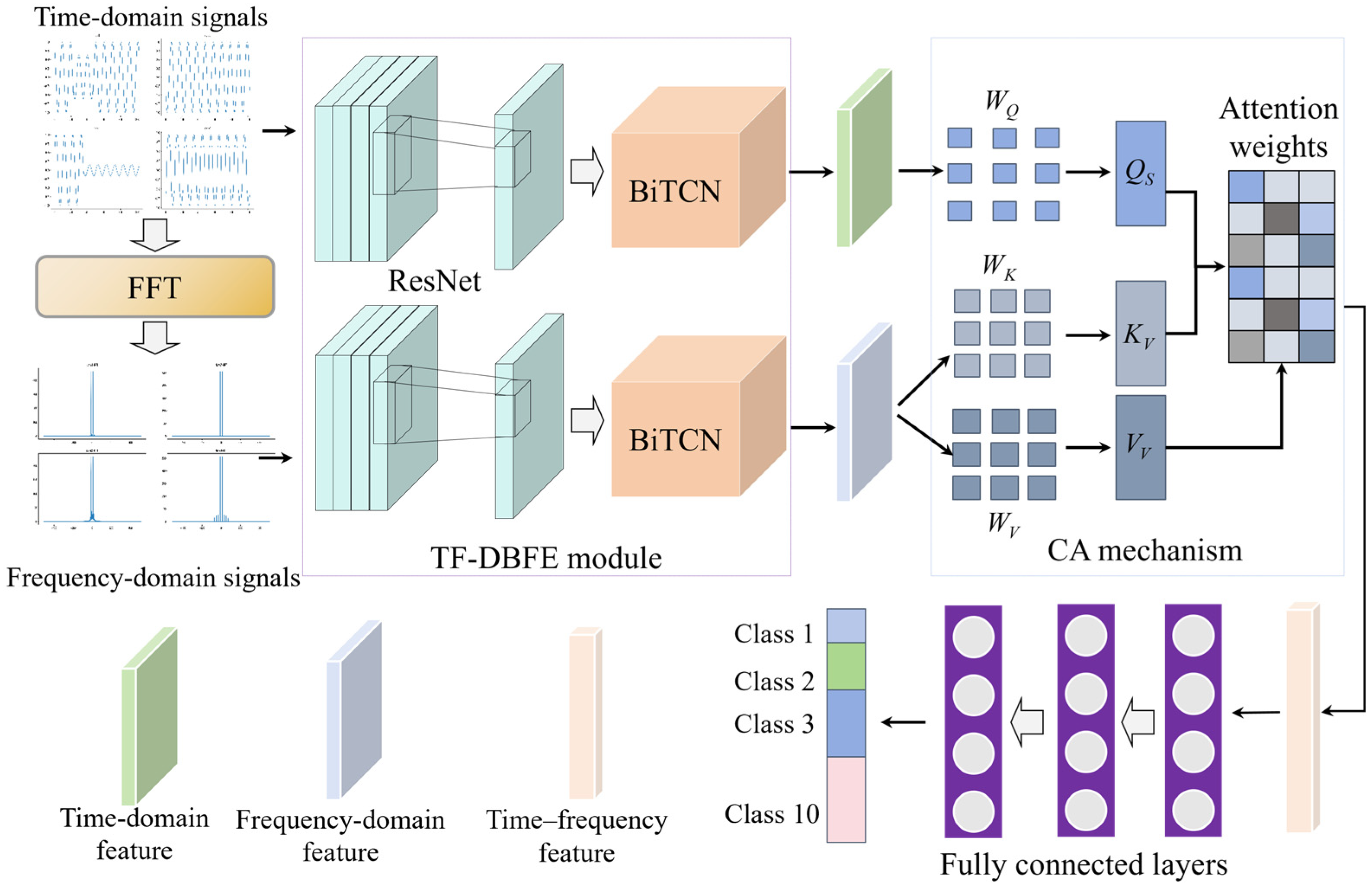 18], a Time–Frequency Dual-Branch Feature Extraction (TF-DBFE) module, and a cross-attention (CA) [