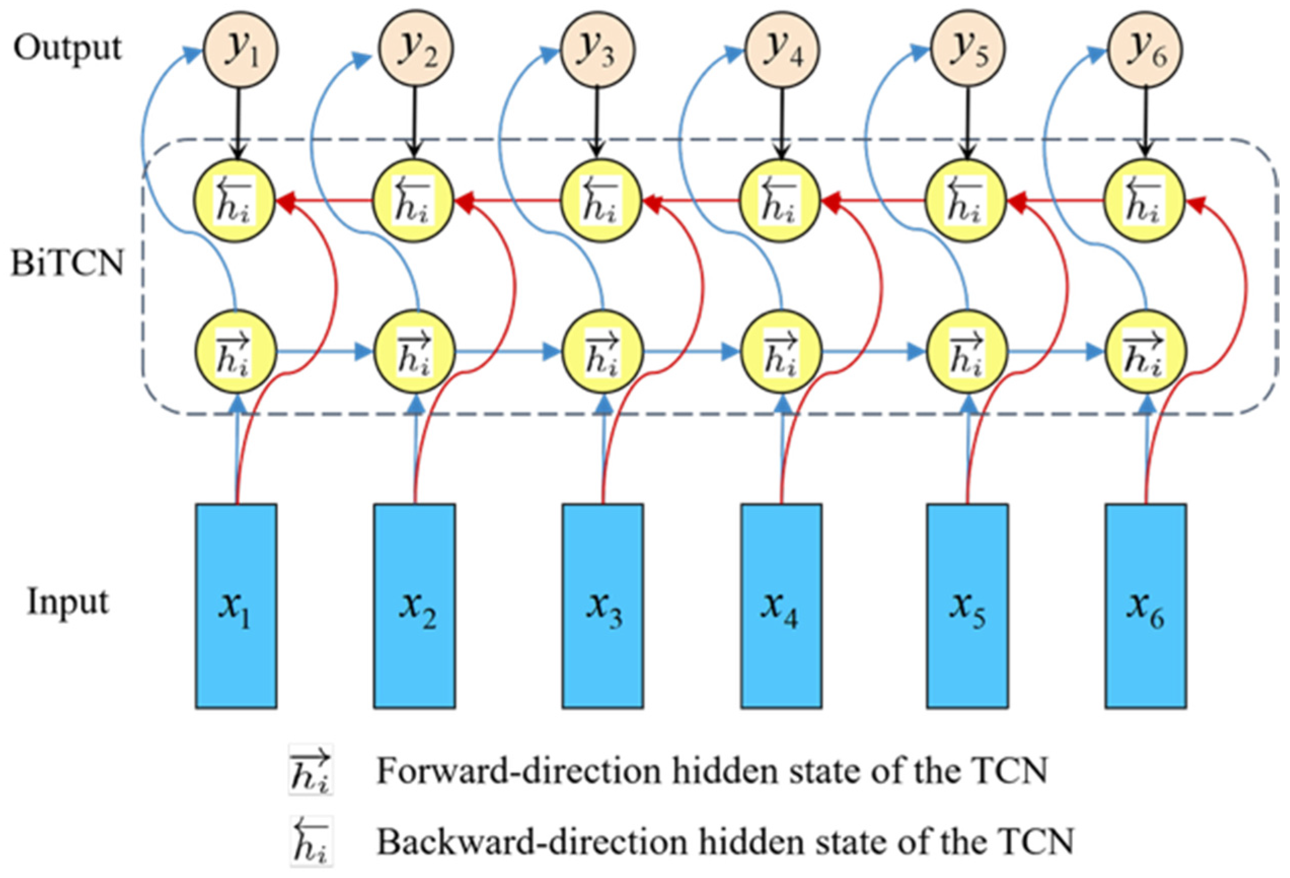 The BiTCN consists of two TCN layers in opposite directions, as shown in
