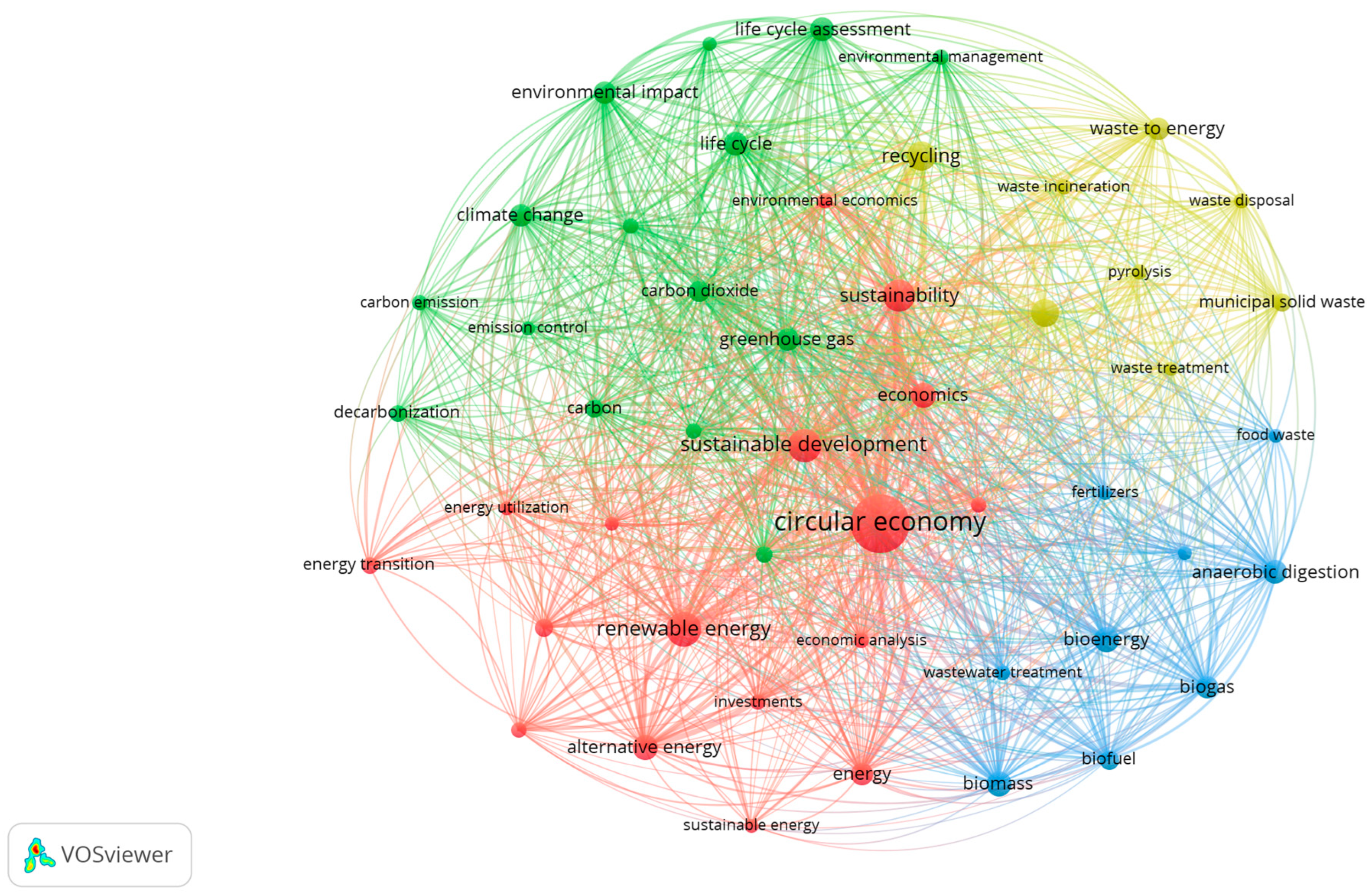 - Alnajem, M.; Mostafa, M.M.; ElMelegy, A.R. Mapping the first decade of circular economy research: A bibliometric network analysis. J. Ind. Prod. Eng. 2021, 38, 29–50. [Google Scholar] [CrossRef]