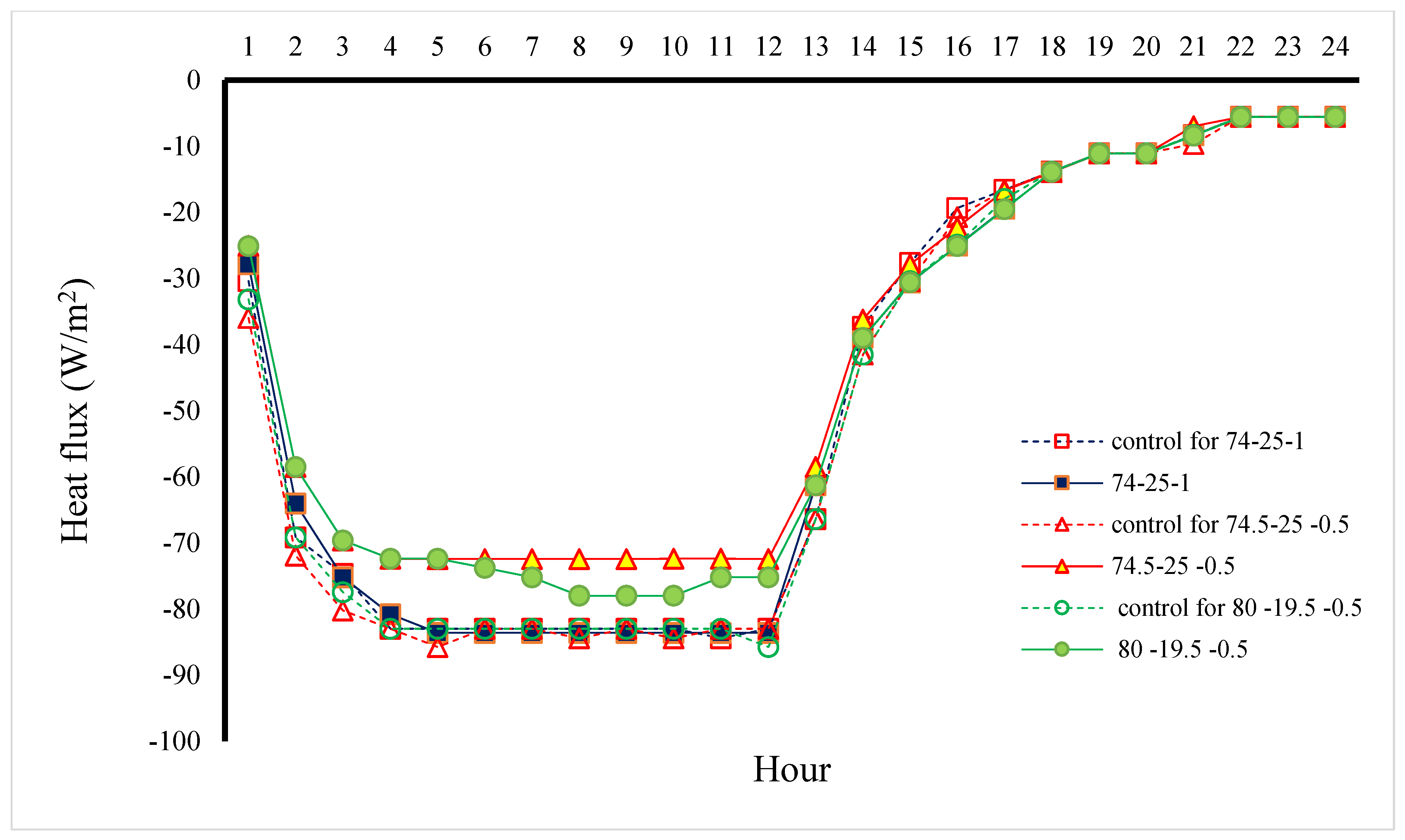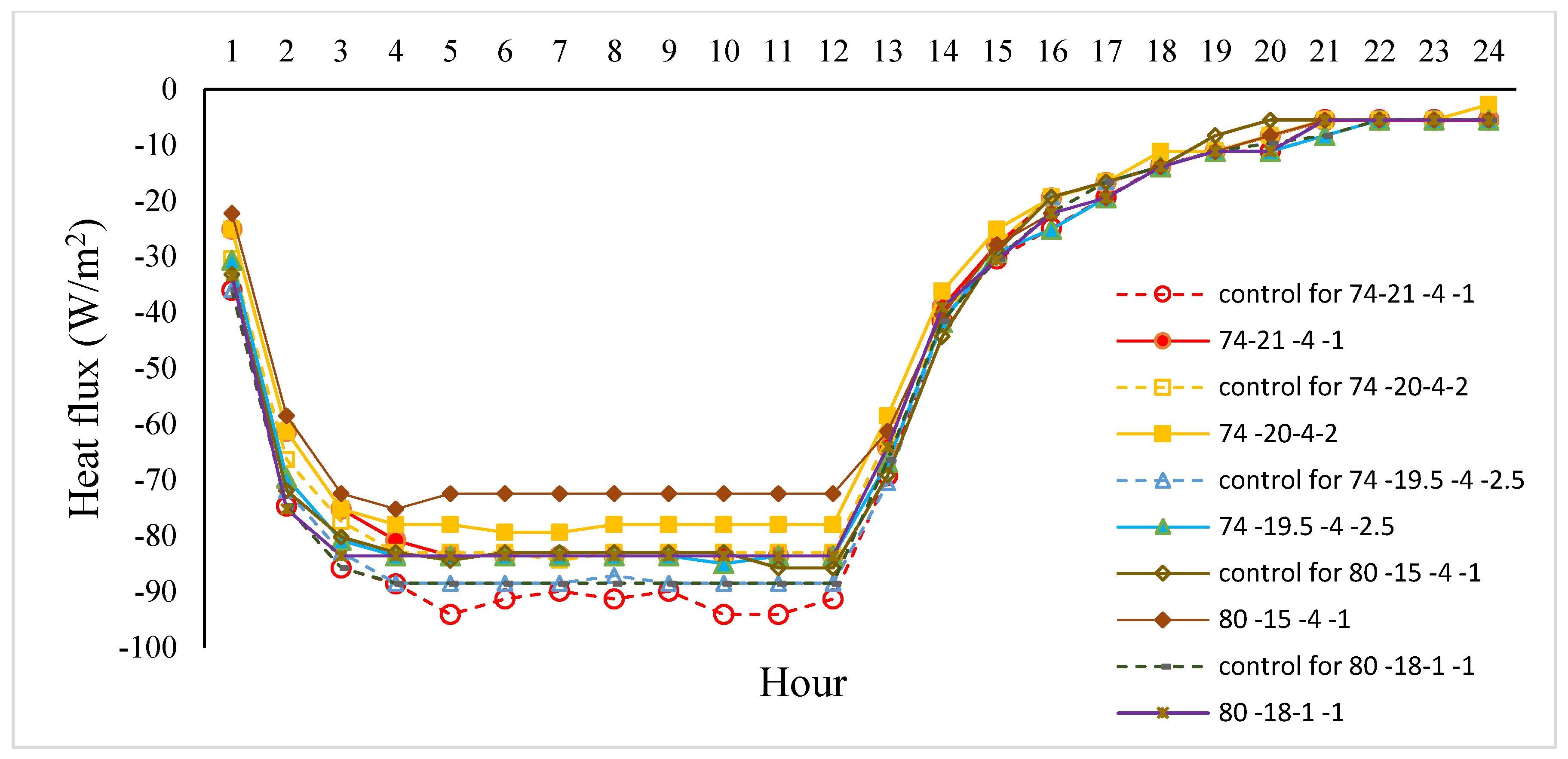 - Li, Z.X.; Al-Rashed, A.A.A.A.; Rostamzadeh, M.; Kalbasi, R.; Shahsavar, A.; Afrand, M. Heat transfer reduction in buildings by embedding phase change material in multi-layer walls: Effects of repositioning, thermophysical properties and thickness of PCM. Energy Convers. Manag. 2019, 195, 43–56. [Google Scholar] [CrossRef]