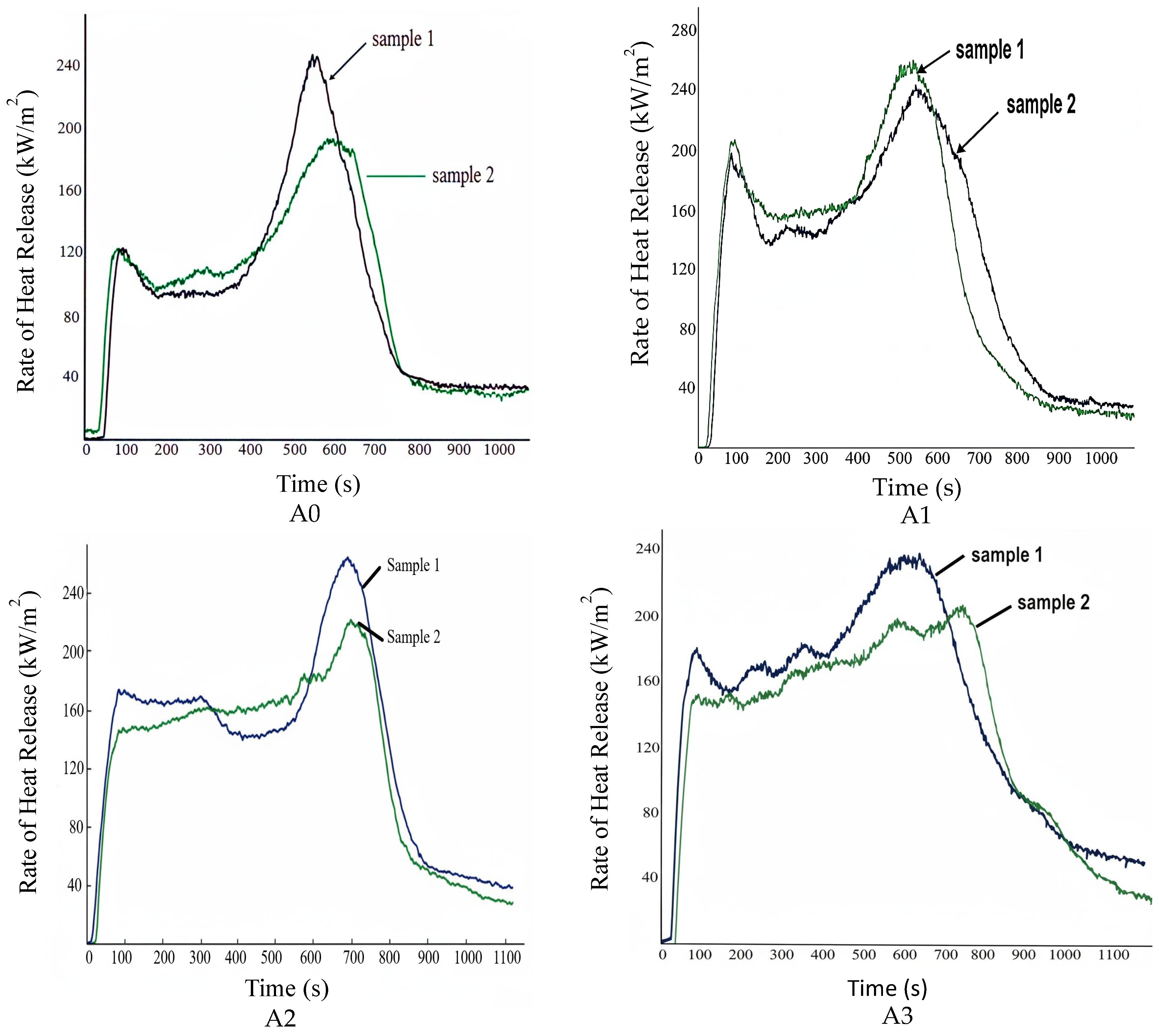 - ASTM E1354-99; Standard Test Method for Heat and Visible Smoke Release Rates for Materials and Products Using an Oxygen Consumption Calorimeter. ASTM: West Conshohocken, PA, USA, 1999.