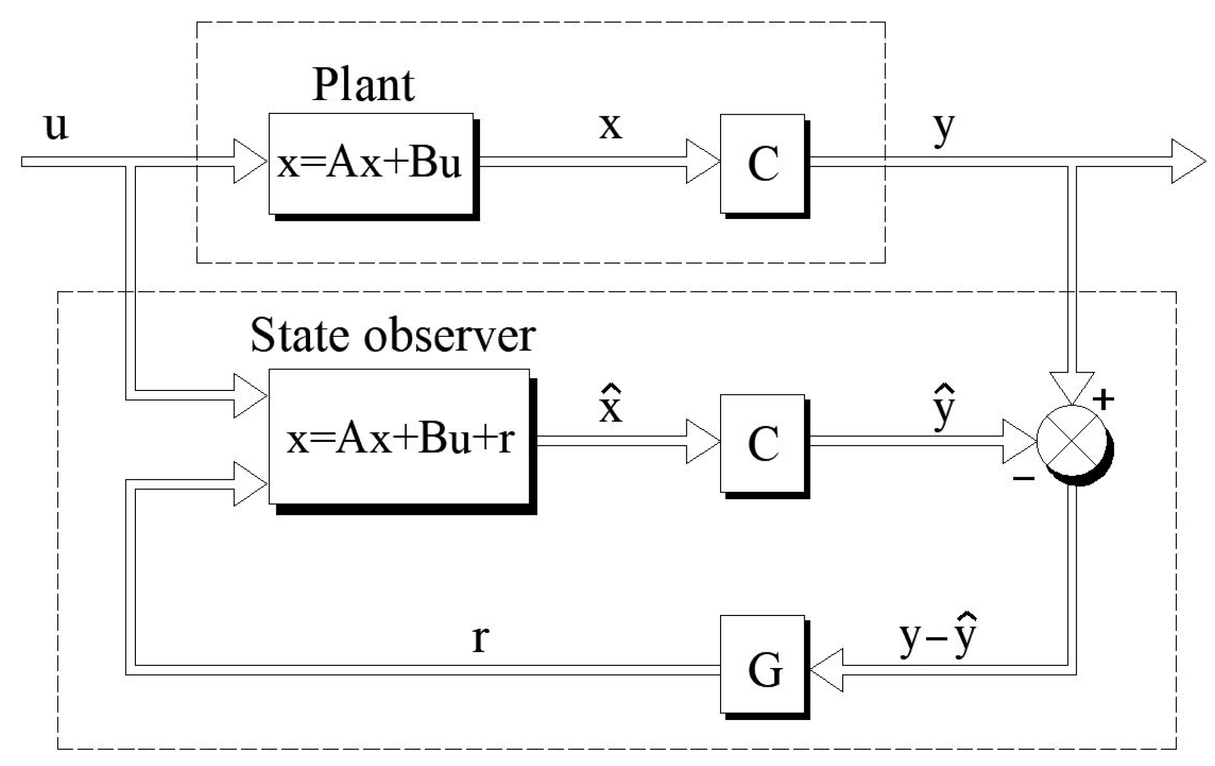 where the vectors of the estimated state variables and output variables are depicted with the symbols
