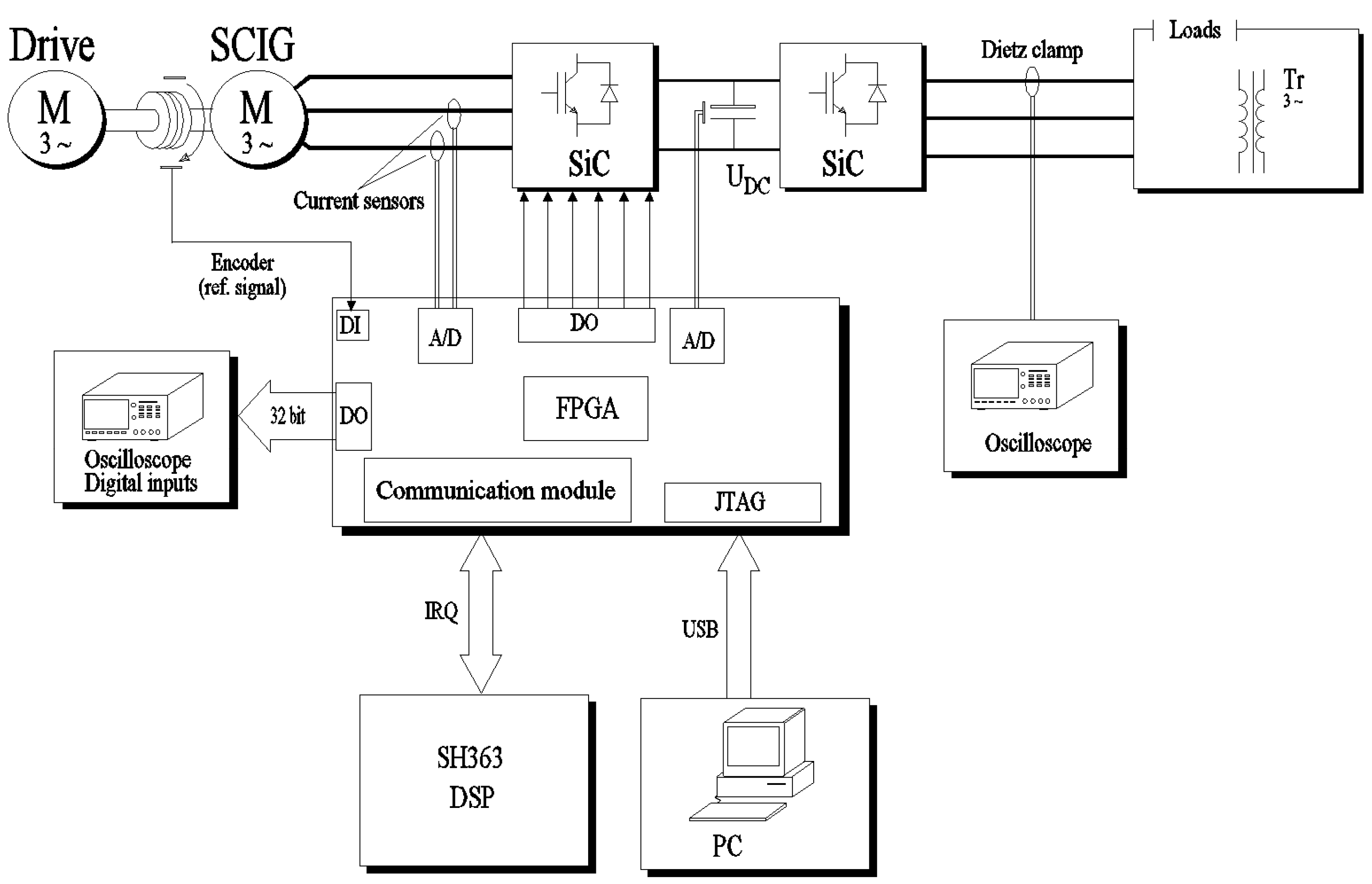 16]. The latter variable is necessary for the proper operation of the field-oriented control method. Due to its good dynamic properties and the possibility of decoupling virtual computational DCs responsible for stabilizing the DC voltage of the intermediate circuit and the current responsible for magnetizing the stator and rotor cores, the authors chose the FOC method for testing, although it is possible to use the DTC method, as shown in [