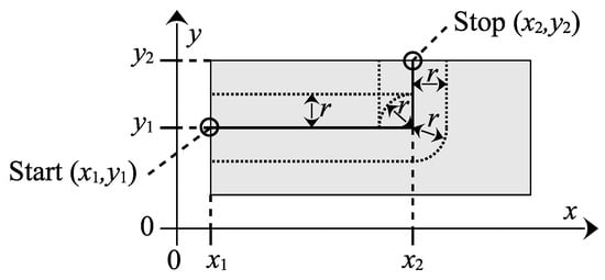 Between turns, the vehicles move parallel to the racks and shelves; thus, finally, they move along the lines depicted in Figure 22 between the points of the route graph.