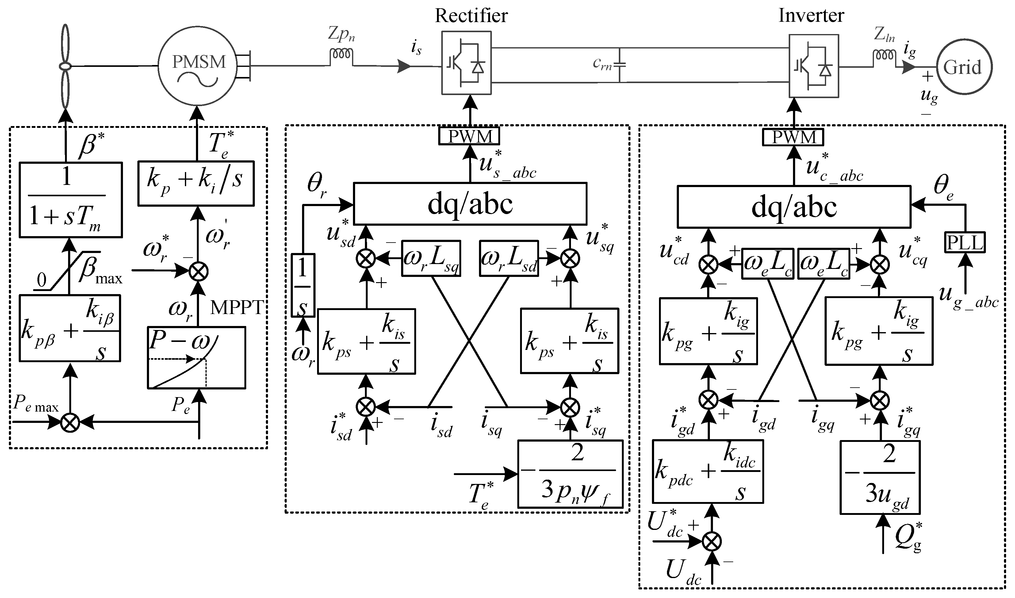 - Zhang, Q.; He, J.; Xu, Y.; Hong, Z.; Chen, Y.; Strunz, K. Average-Value Modeling of Direct-Driven PMSG-Based Wind Energy Conversion Systems. IEEE Trans. Energy Convers. 2022, 37, 264–273. [Google Scholar] [CrossRef]