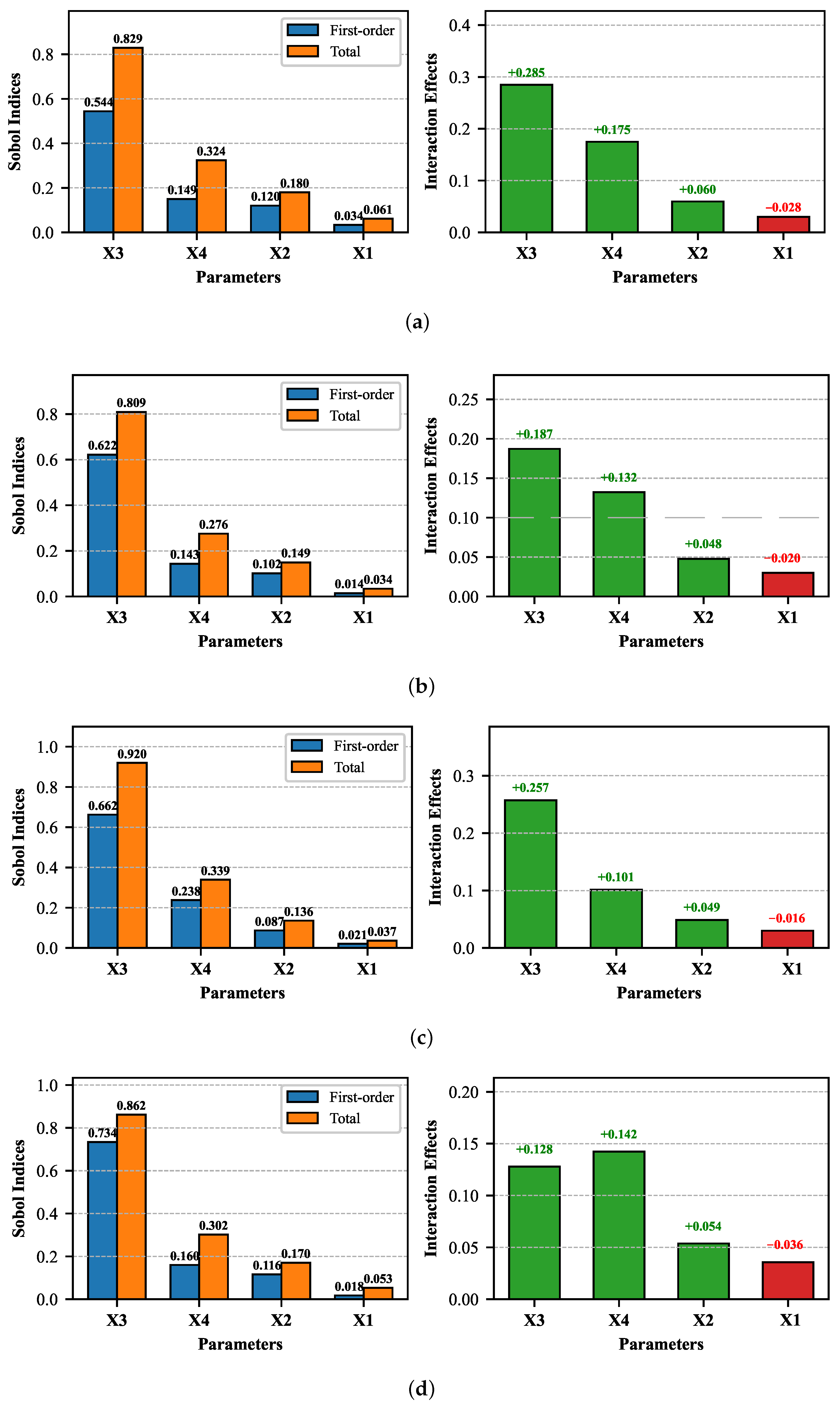 3.1. Sensitivity Analysis Based on the Sobol Method for Key Parameters
