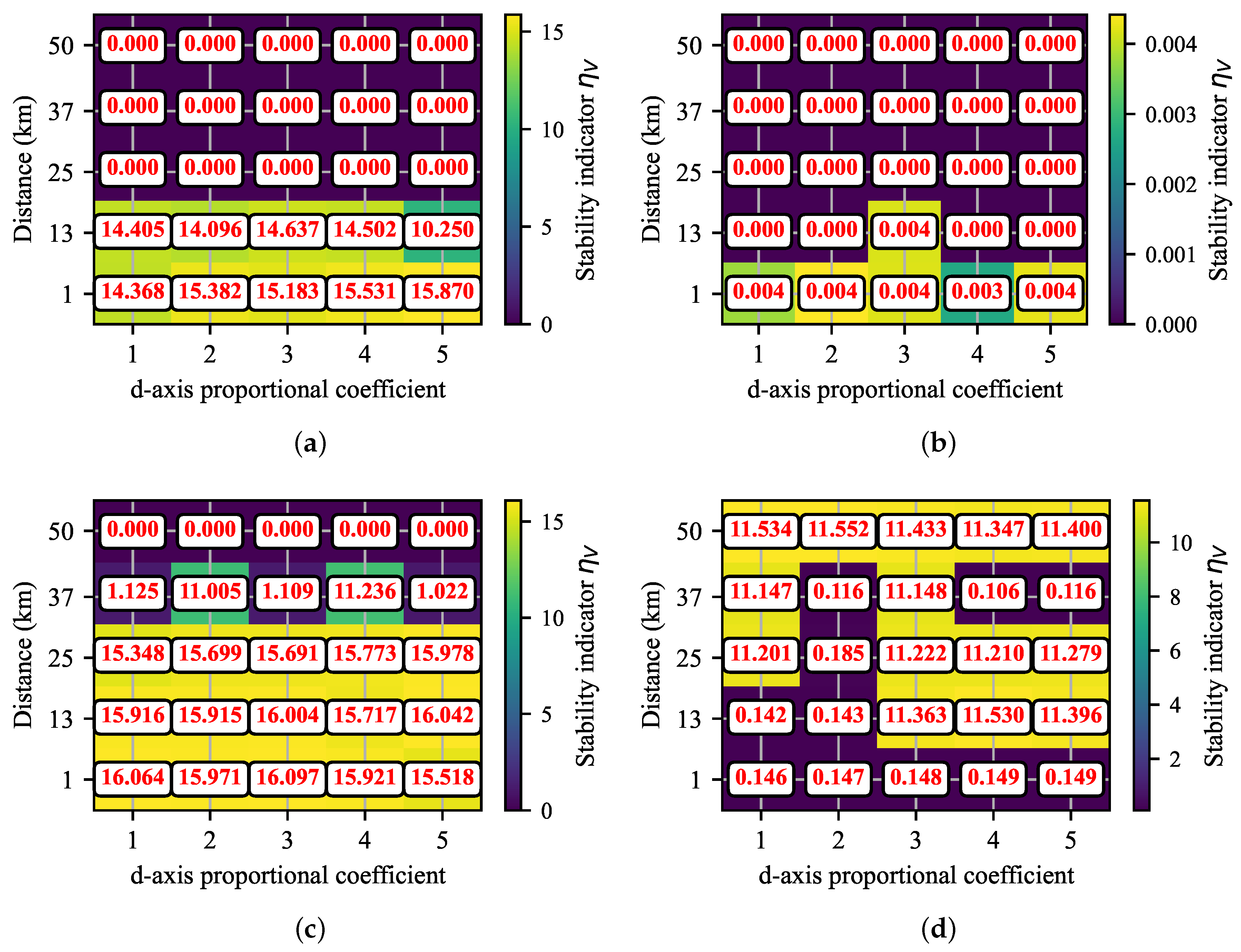 - Jing, M.; Honglu, X.; Xiangyu, L. Study on Transient Stability Mechanism for Grid-Connected Direct-Drive Wind Power Systems under Strong Interactions. Proc. CSEE 2025, 45, 4669–4681. [Google Scholar] [CrossRef]