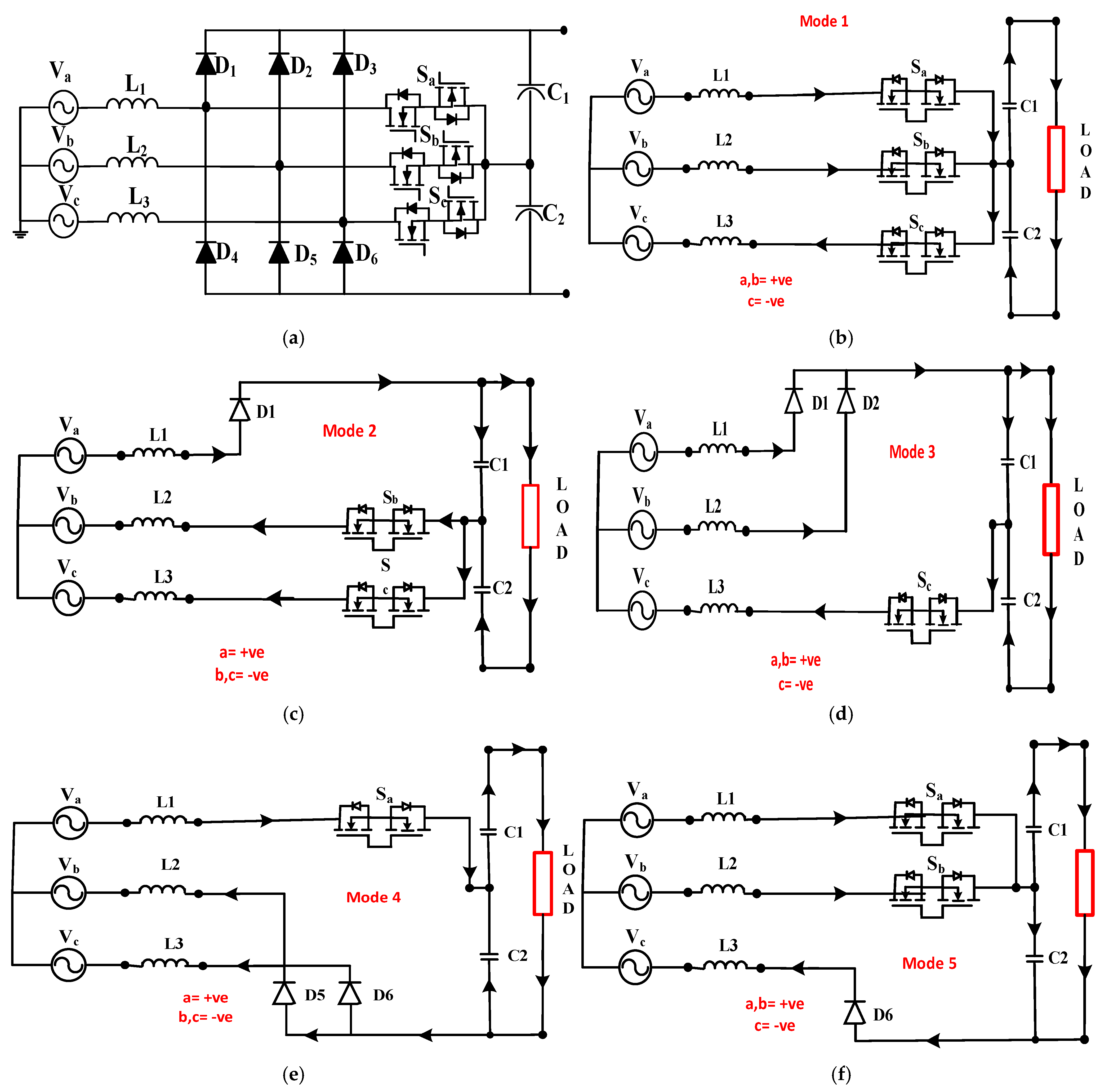 28]. Its variant, the Swiss rectifier, includes two extra switches to reduce conduction and switching losses, enabling improved PFC, reduced THD, and better performance in mid-power EV fast chargers, although scalability and control complexity remain challenges [