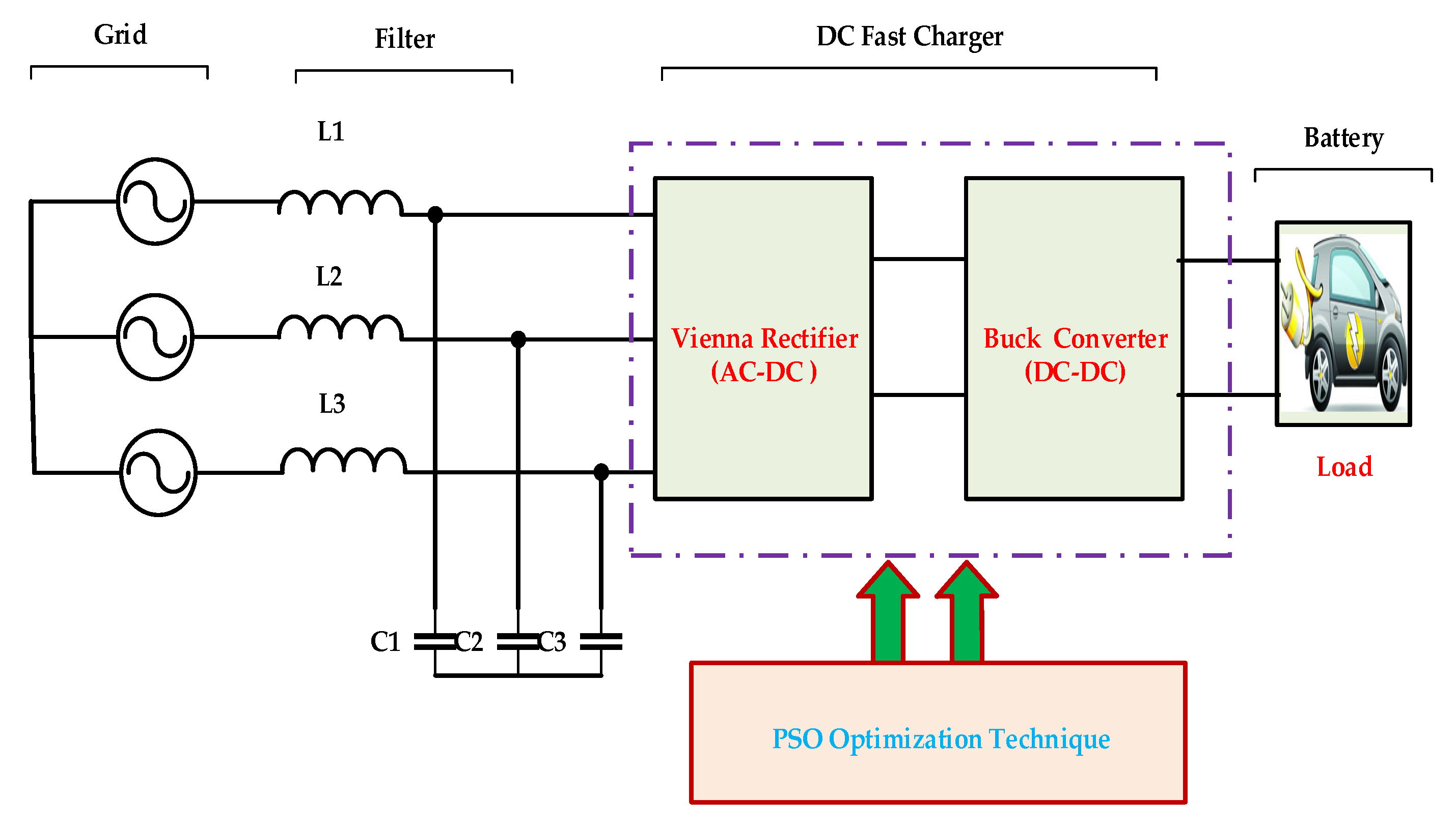Figure 2 presents the overall architecture of the CryStAl–RDF-based fast-charging system. The Vienna rectifier has a three-level rectifier structure, as seen in