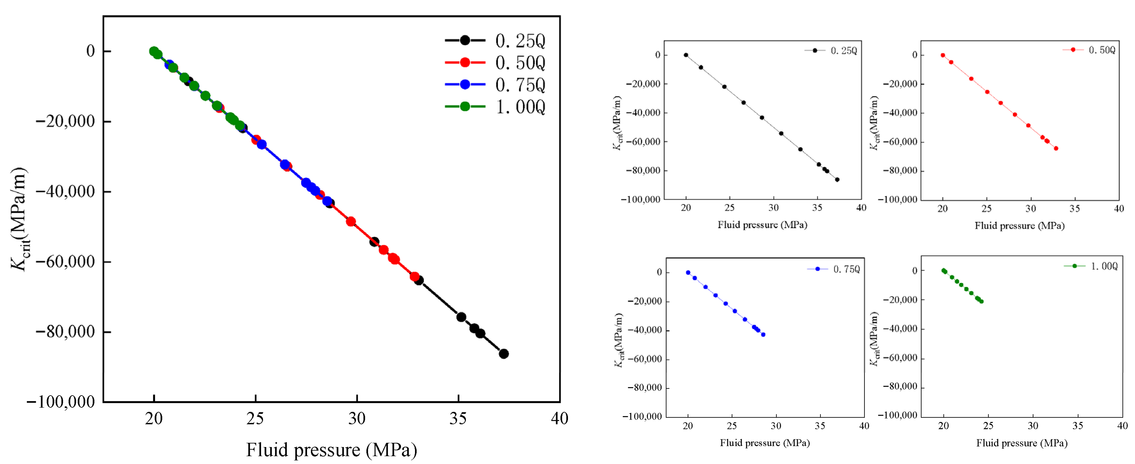 The relationship between Kcrit and fluid pressure.