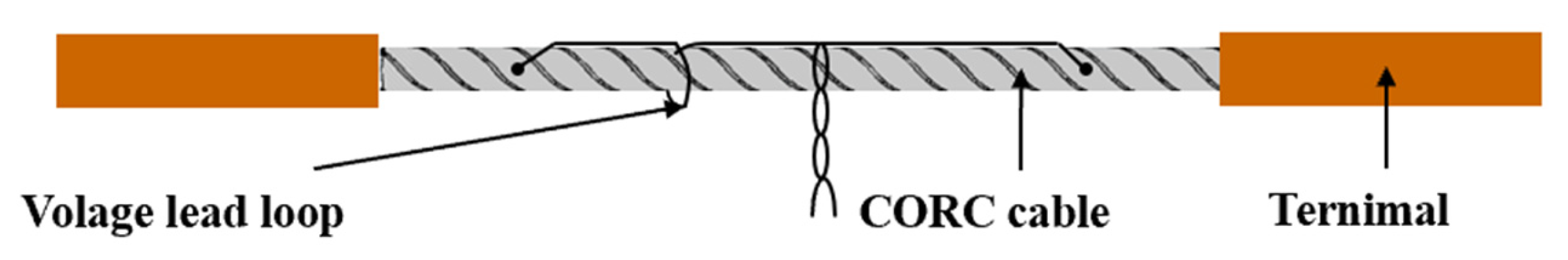 - Li, C.; Yang, W.; Yang, J.; Li, Q.; Xin, Y. Analysis of the influence of joint resistance on AC loss of CORC cable. Trans. China Electrotech. Soc. 2024, 39, 230970. [Google Scholar]