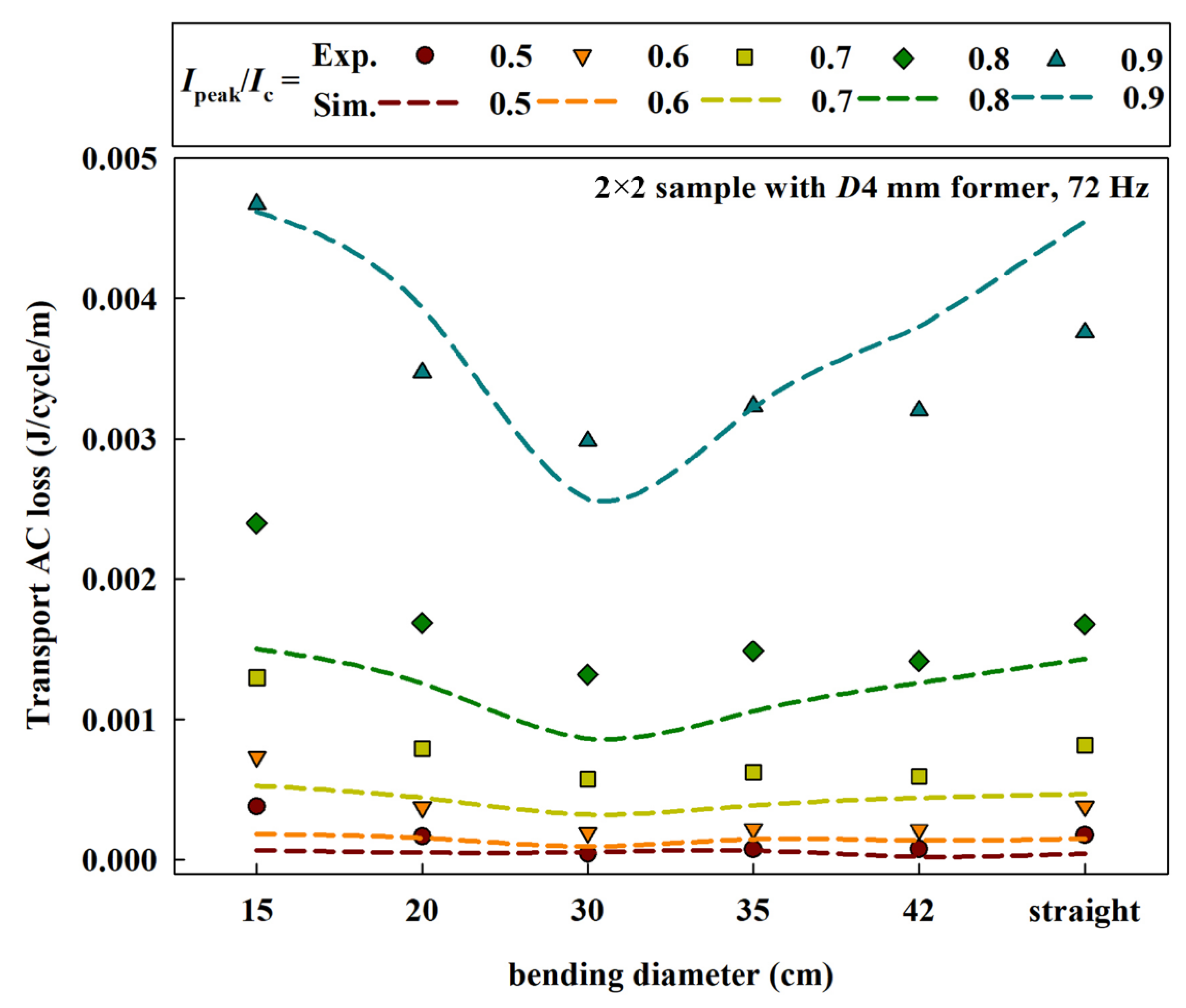 - Pardo, E. Theoretical and experimental study of AC loss in high temperature superconductor. Supercond. Sci. Technol. 2009, 22, 015006. [Google Scholar]
