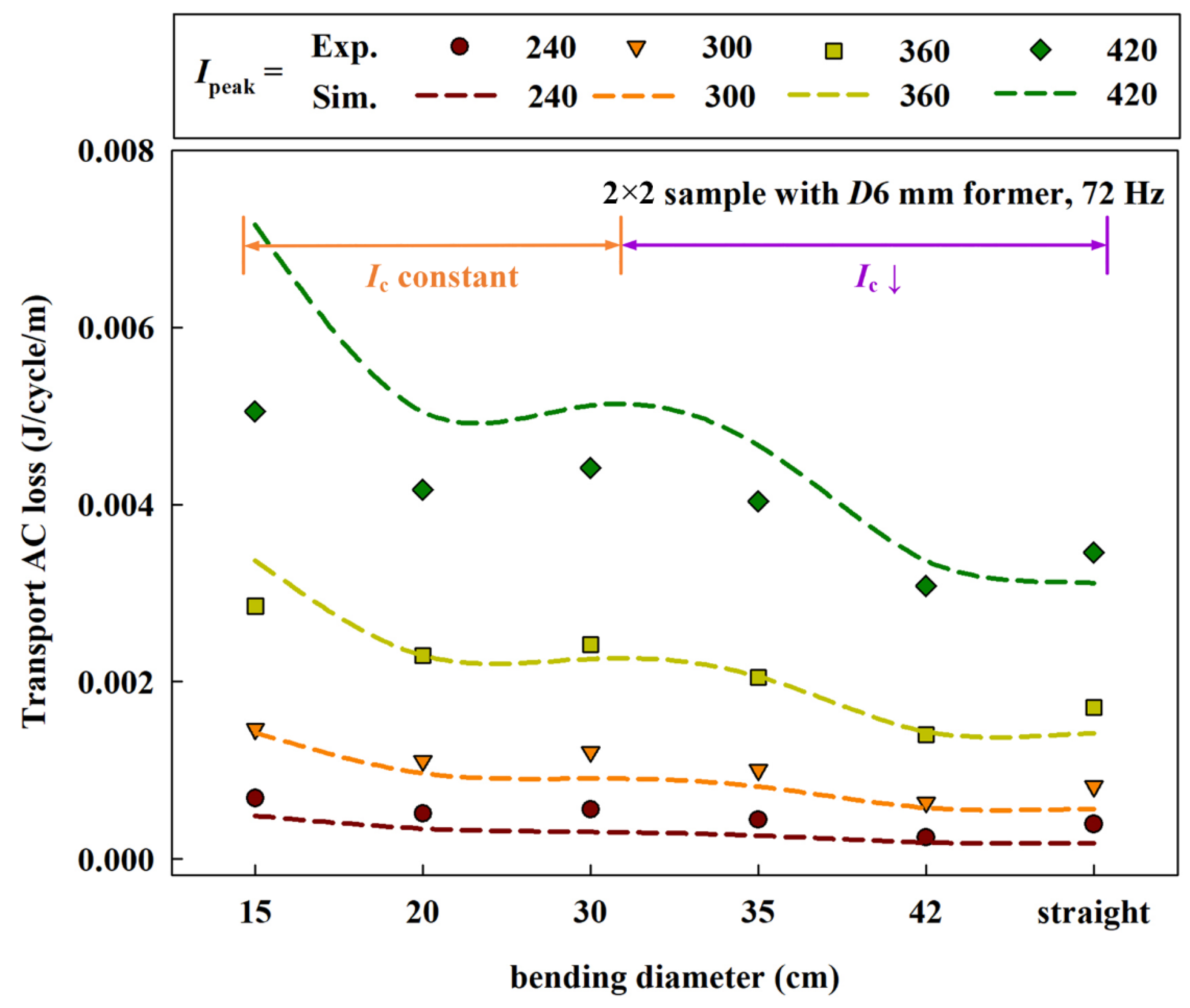 4.2. Bent CORC Cable with Critical Current Degradation