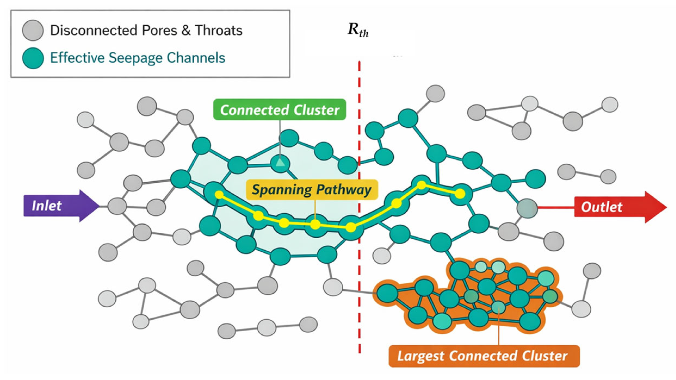 th, all pore–throat paths that connect the inlet and outlet and belong to the spanning connected cluster are collectively referred to as effective seepage channels (