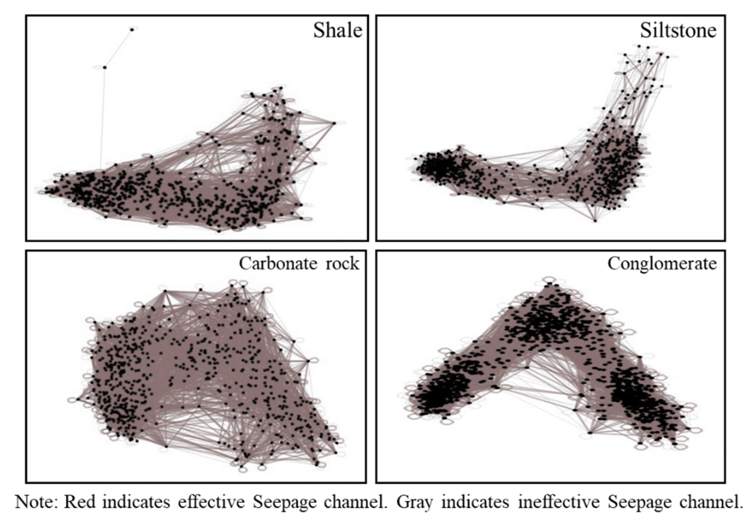 26]. Network models have been utilized to estimate connectivity thresholds for seepage channels and to explore the evolution of fluid distributions under different displacement conditions [