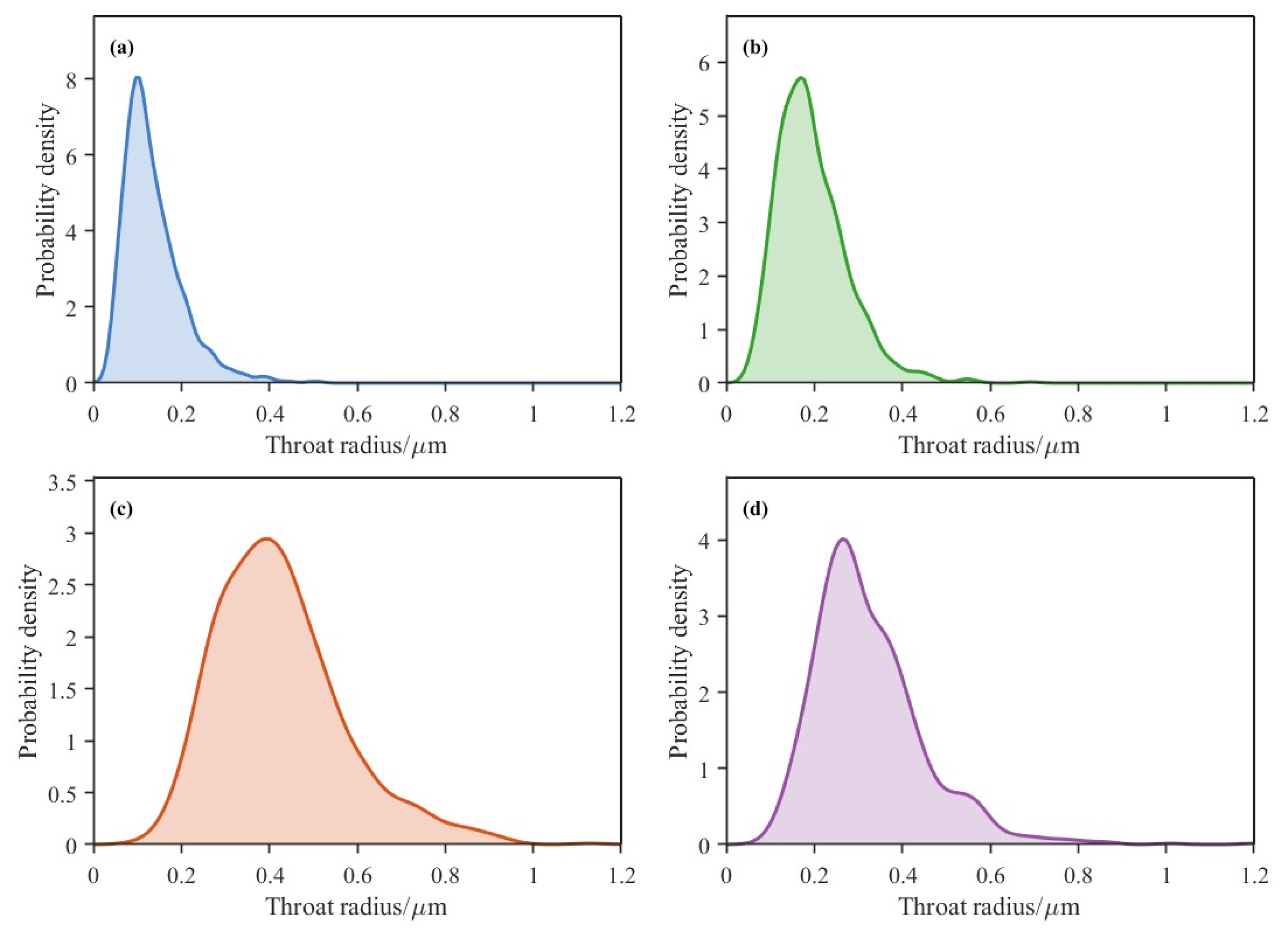 The overall level and dispersion of throat size are described by the mean throat radius and the coefficient of variation in throat radius. The mean throat radius (R