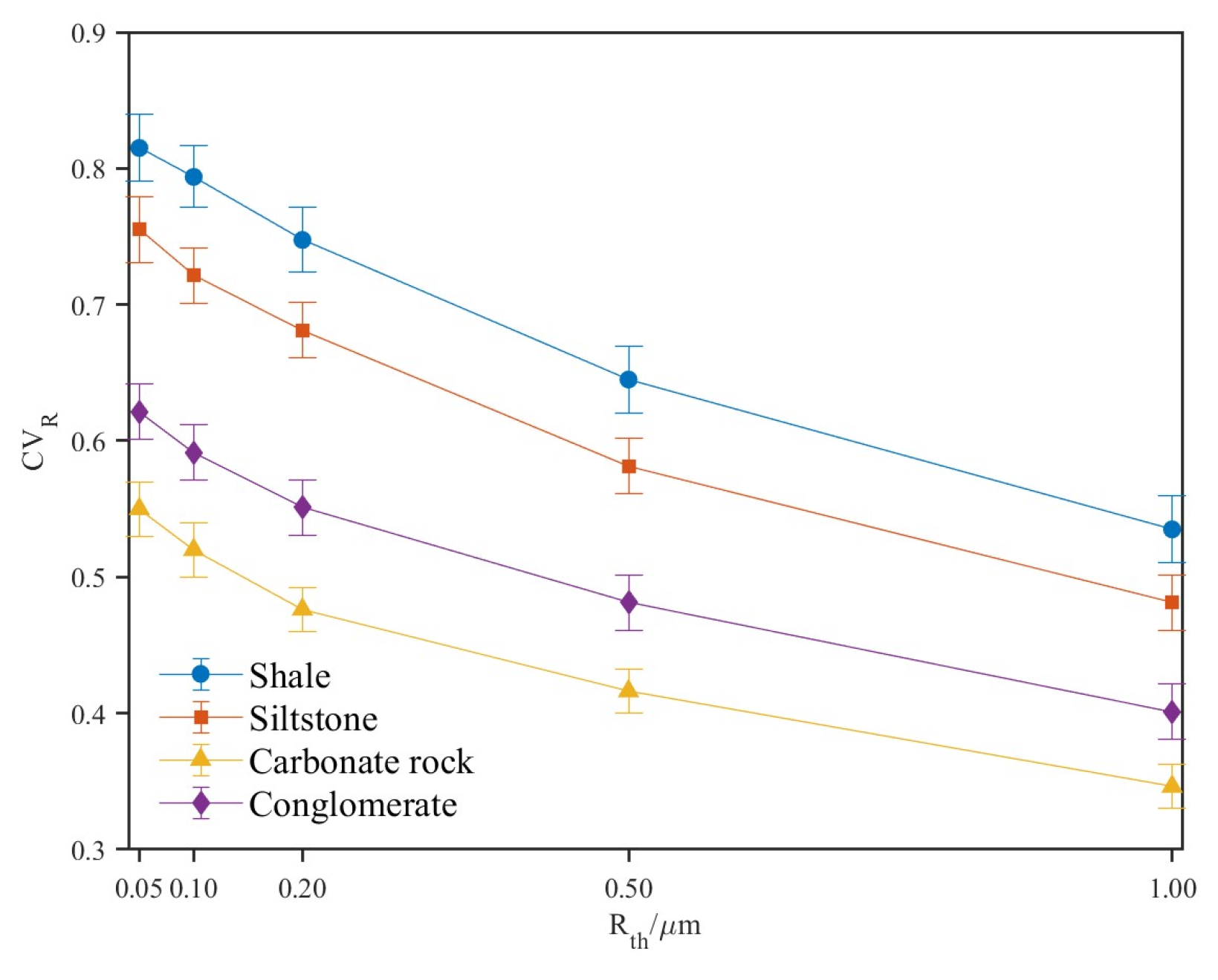 R indicates a wider throat-size spectrum and stronger heterogeneity. In this study, CV