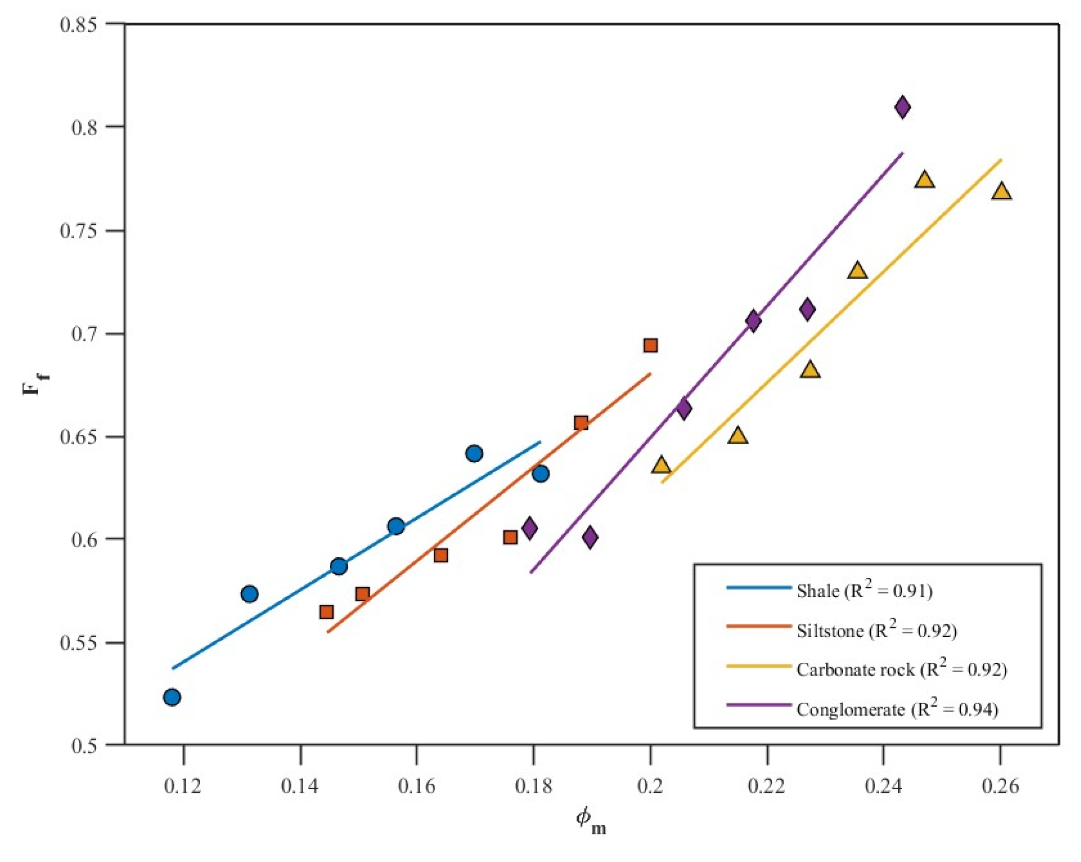 f within the lithology, and the coefficient of determination R