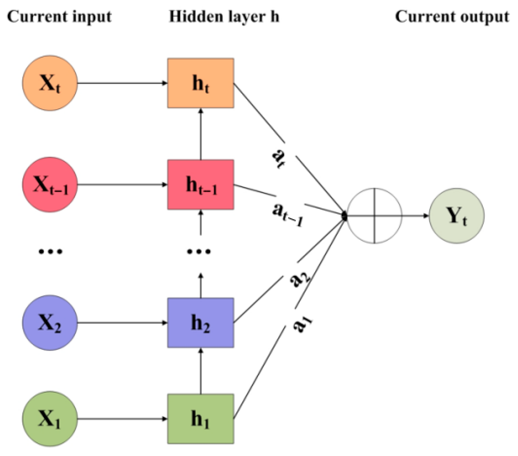 The attention mechanism is introduced to selectively emphasize critical temporal features by assigning adaptive importance weights to different time steps. In wind power forecasting, adjacent observations generally exhibit stronger correlations with the target output, whereas distant time steps often contribute less. More importantly, rapid changes in wind power, commonly referred to as ramping events, carry substantially more predictive information than relatively stable periods.
