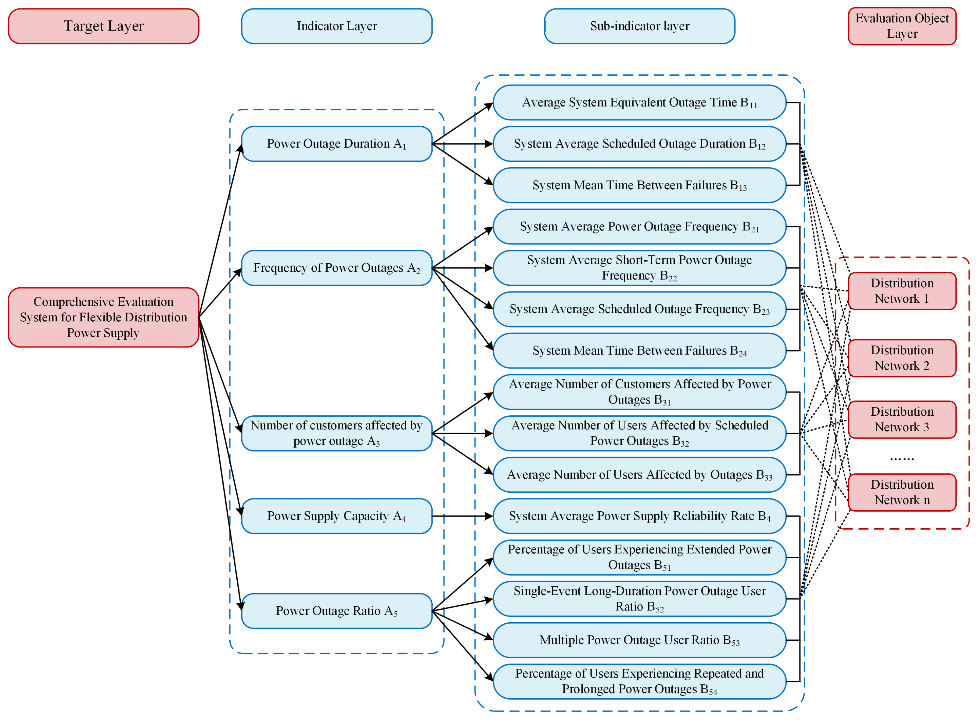 29]. This method usually relies on expert judgment in weight assignment and hierarchical coupling analysis, where experts are equipped with distribution network operation experience, reliability management background and system planning expertise.
