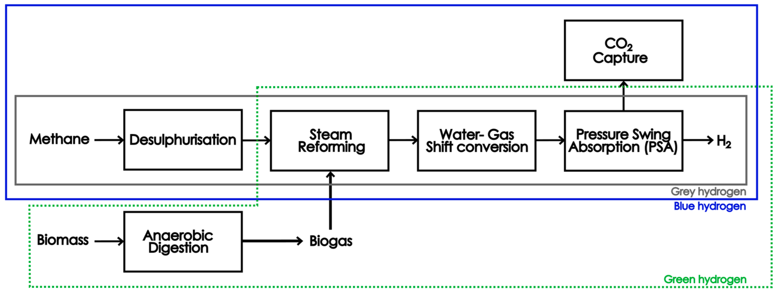 - Nakkeeran, K.; Victor, K. Grey and Blue Hydrogen: Insights into Production Technologies and Outlook on CO2-Free Alternatives. Sustain. Energy Technol. Assess. 2025, 75, 104222. [Google Scholar] [CrossRef]