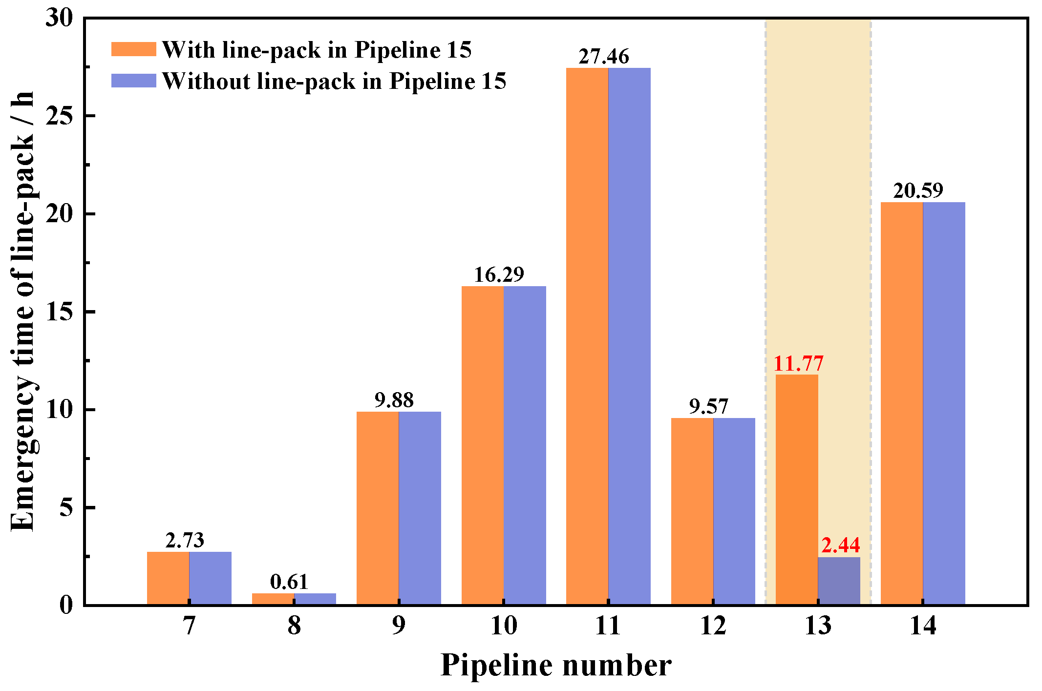 | Scenario | Pipeline Number | The Available Time of Line Pack/h |