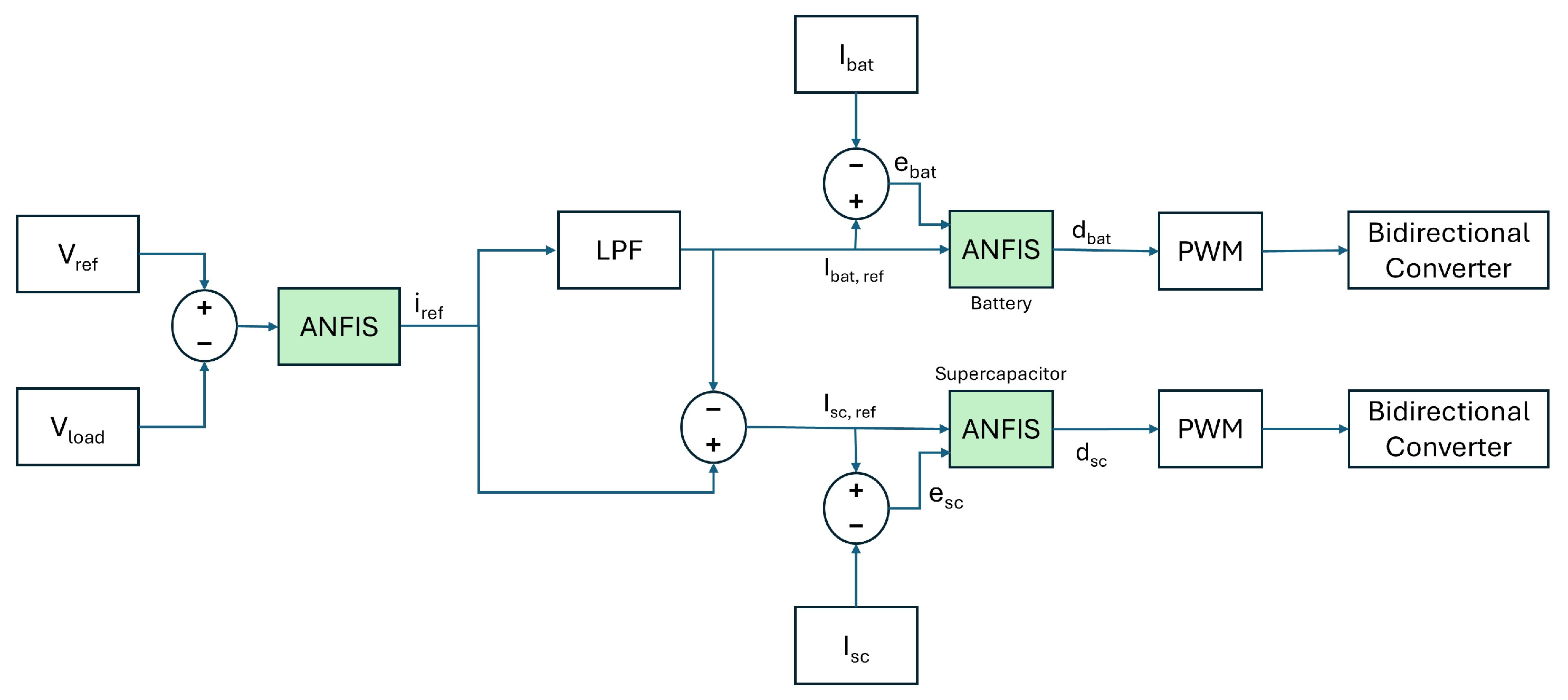 - The performance of the proposed ANFIS controller is compared with that of the conventional PI controller and a traditional Fuzzy Logic controller (FLC) for HESS.