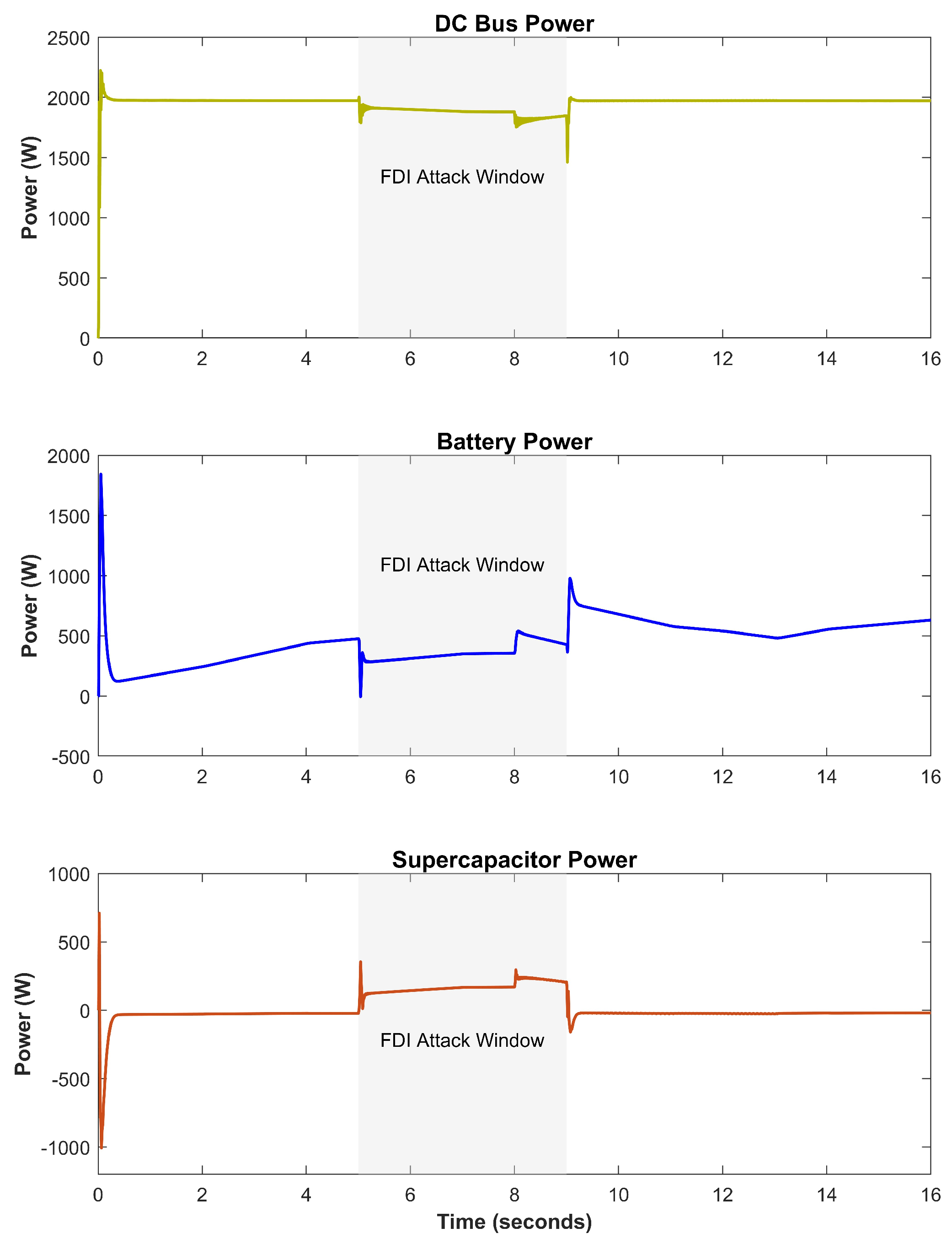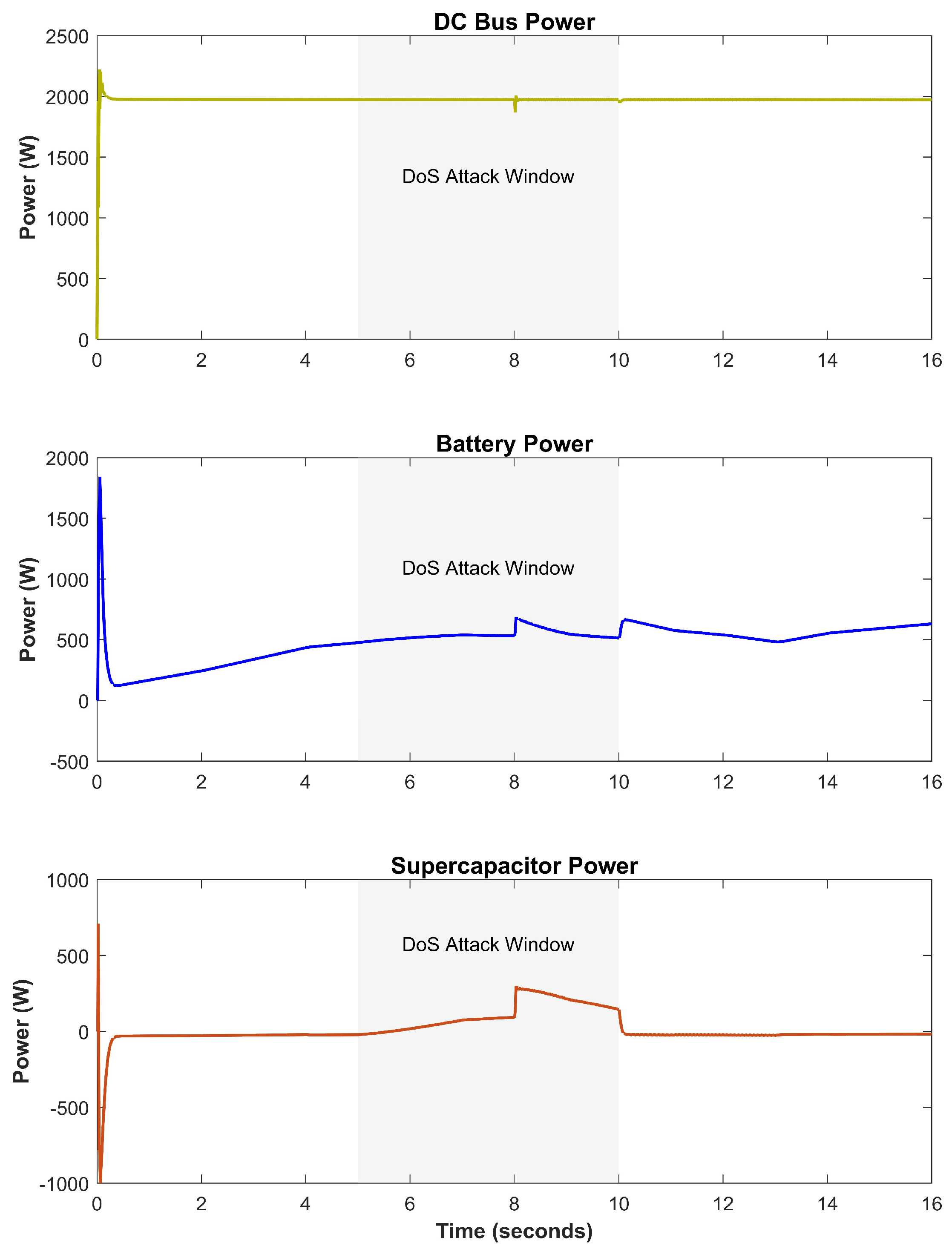 - A qualitative and performance-oriented analysis is conducted to demonstrate how cyber-attacks disrupt the intended power-sharing mechanism between the battery and supercapacitor.
