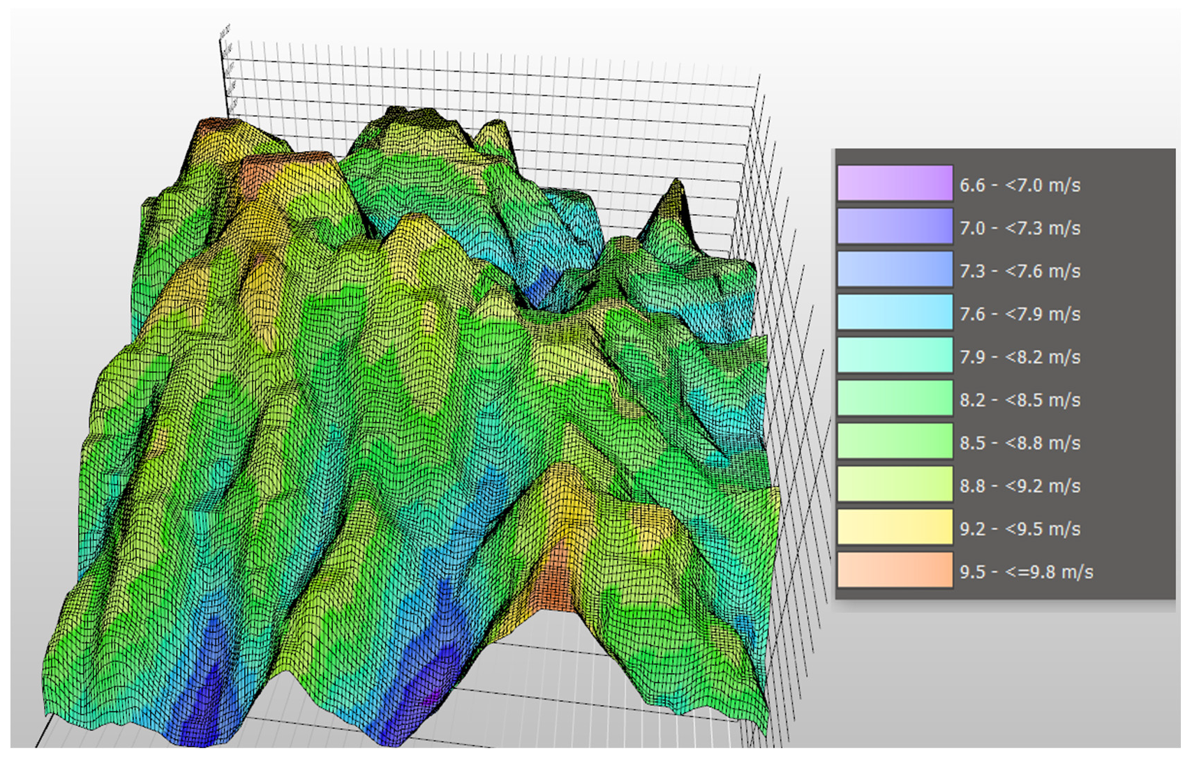 Second, this study relies on a simplified engineering wake model (the Jensen/PARK model) with linear superposition of wake deficits, including its implicit extension to vertical wake interference between turbines of different hub heights. While such models are widely used in commercial design tools due to their simplicity and computational efficiency, they do not fully capture three-dimensional wake structures, stability-dependent turbulence, or nonlinear wake–wake interactions in complex mountainous terrain. Consequently, the absolute values of wake losses and AEP should be interpreted as approximate estimates, although the relative comparison between single-height and mixed-height layouts is expected to remain qualitatively robust. Future work should validate the predicted wake interaction patterns and performance gains using higher-fidelity approaches, such as RANS/LES CFD or field measurements.