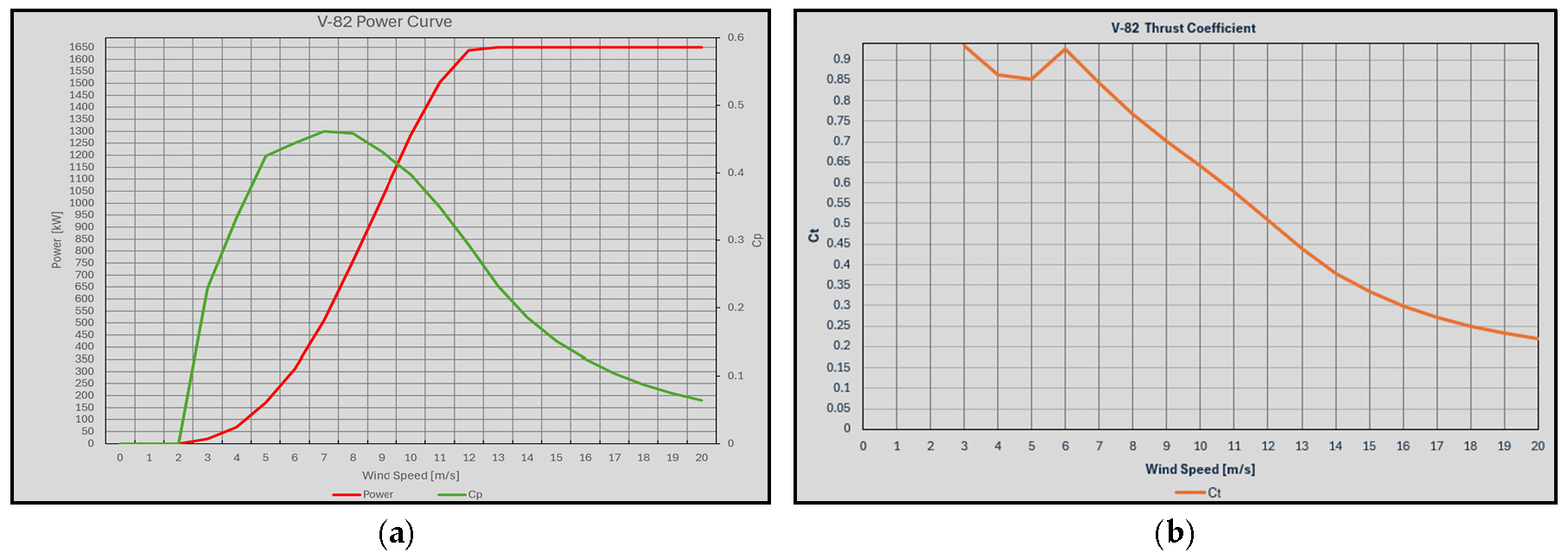 In the mixed-layout cases, a noticeable improvement in efficiency was observed owing to the reduced wake interference, even within the same site area, which can be attributed to the utilization of the natural elevation differences among the turbines caused by mountainous topography. The results demonstrated that both turbine types exhibited a reduction in wake losses when arranged in mixed configurations. For the V-82 turbine, the wake loss rate for the single-height layout using only the highest hub height (80 m) was approximately 14%. When some turbines were replaced with those with lower hub heights (59 m), wake loss decreased to approximately 13.7%. The total AEP in the mixed layout reached approximately 146.5 GWh/yr, which was only 0.8 GWh/yr lower than that with a uniform height layout. That is, while individual low-hub-height turbines generated slightly less power, the mitigation of wake interference compensated for the overall efficiency loss, allowing the total energy output of the wind farm to remain nearly constant.