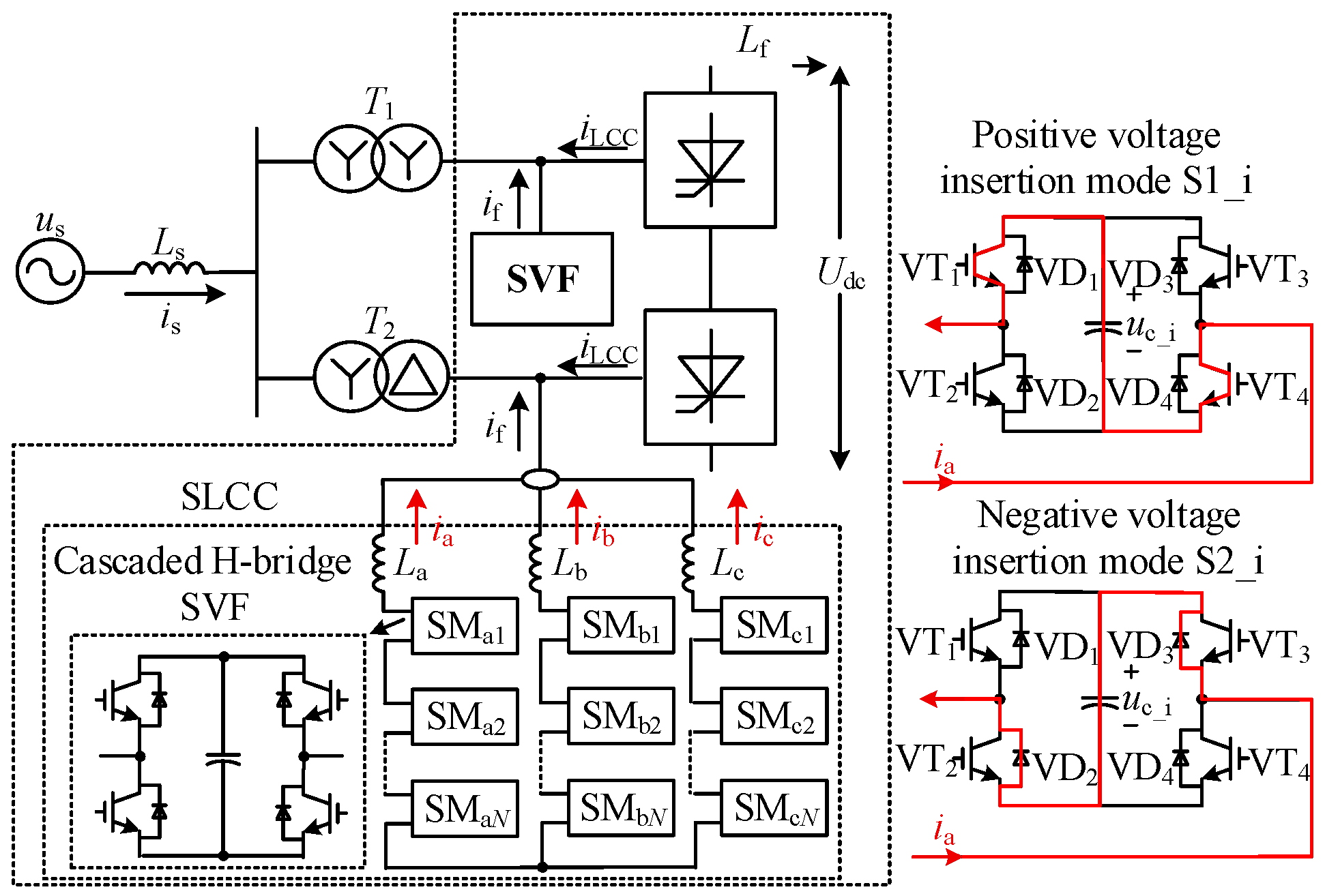 - Weimin, M.; Xiaolin, S.; Liang, C. A Novel LCC HVDC Transmission Technology Based on the Static Var Generator and Filter. In Proceedings of the 2024 International Conference on HVDC (HVDC), Urumqi, China, 8–9 August 2024; pp. 541–545. [Google Scholar]