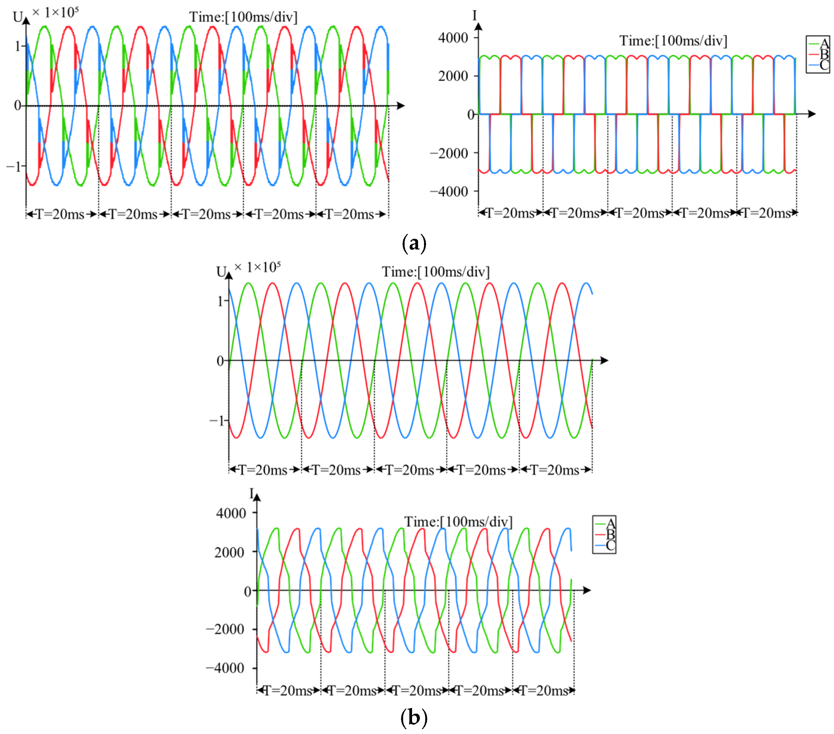 - Driving Signal Gating and Output: The gating unit arbitrates the output signals based on the threshold assessment. For submodules operating within normal limits (W ≤ 1), signals from the NLM-based balancing strategy are passed; for submodules exceeding the threshold (W > 1), signals from the CPS-PWM scheme are engaged. The gating logic is designed to ensure seamless switching between the two modulation sources, effectively eliminating transient disturbances during mode transitions.