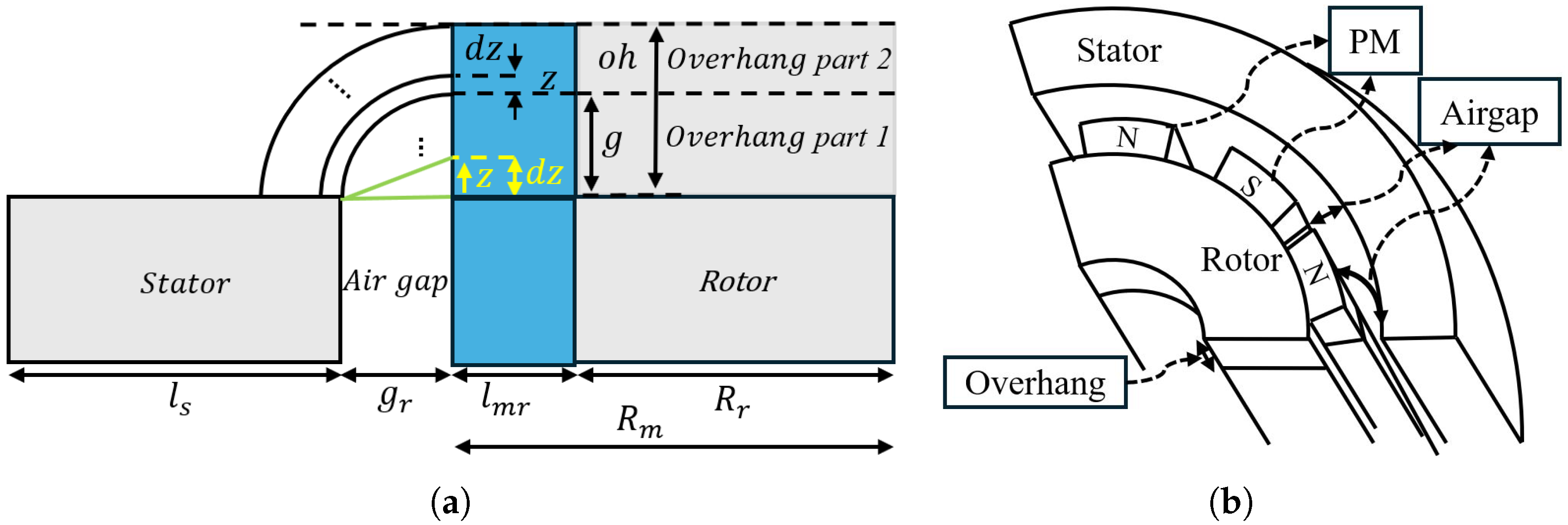 More recently, analytical and semi-three-dimensional MEC methods have been proposed as effective alternatives to full three-dimensional finite element analysis (FEA), offering a favorable trade-off between computational efficiency and modeling accuracy, particularly when overhang effects must be considered during early-stage PMSM design [