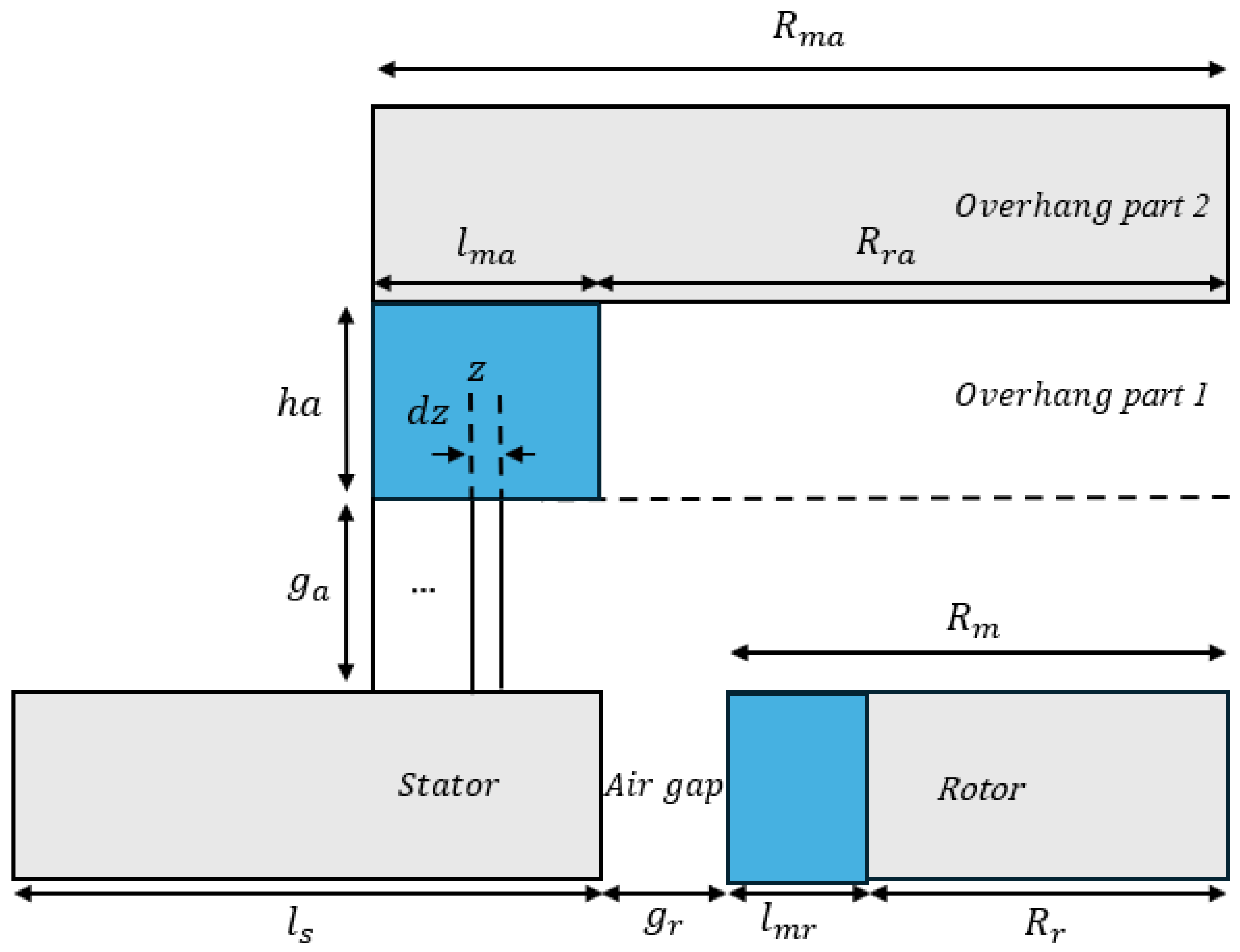 33], the airgap in the non-overhang region is uniform, but in the overhang region, it varies with axial position. As shown in