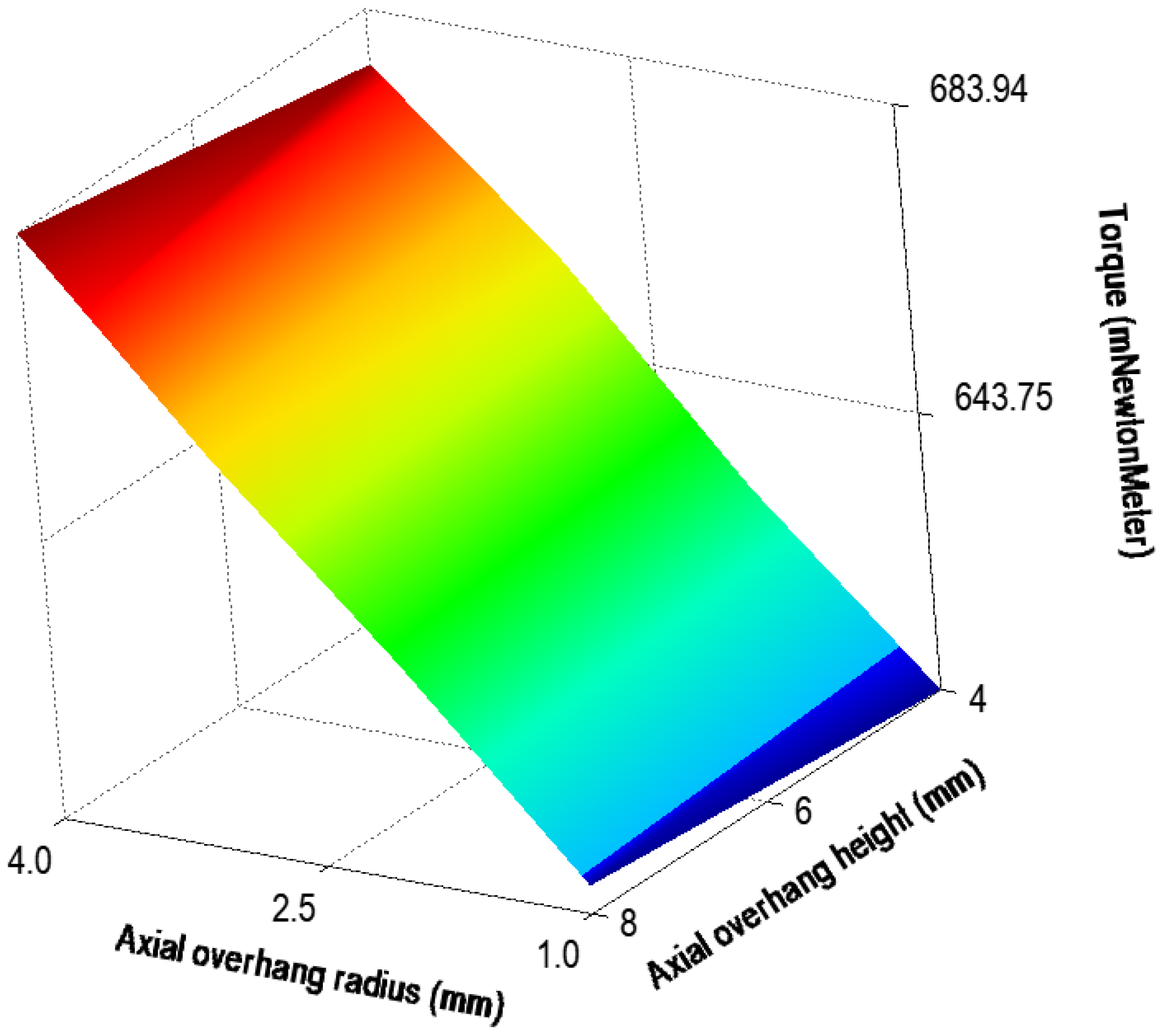 To reduce the effective airgap compared to the conventional overhang structure, this study adds an axial rotor to the PMSM. Instead of placing magnets along the axial length of the rotor, a separate axial rotor is introduced. By reducing the effective airgap, the machine’s average magnetic field increases, leading to higher voltage and, ultimately, greater torque. The proposed structure utilizes the space in the motor to boost output torque by inserting additional PMs on the axial rotor. In the proposed structure, the stator geometry—including the stator core, slots, and windings—remains unchanged and identical to that of a conventional radial PMSM. The torque enhancement is achieved solely by adding an axial rotor to the radial PMSM structure, without modifying the original stator design.