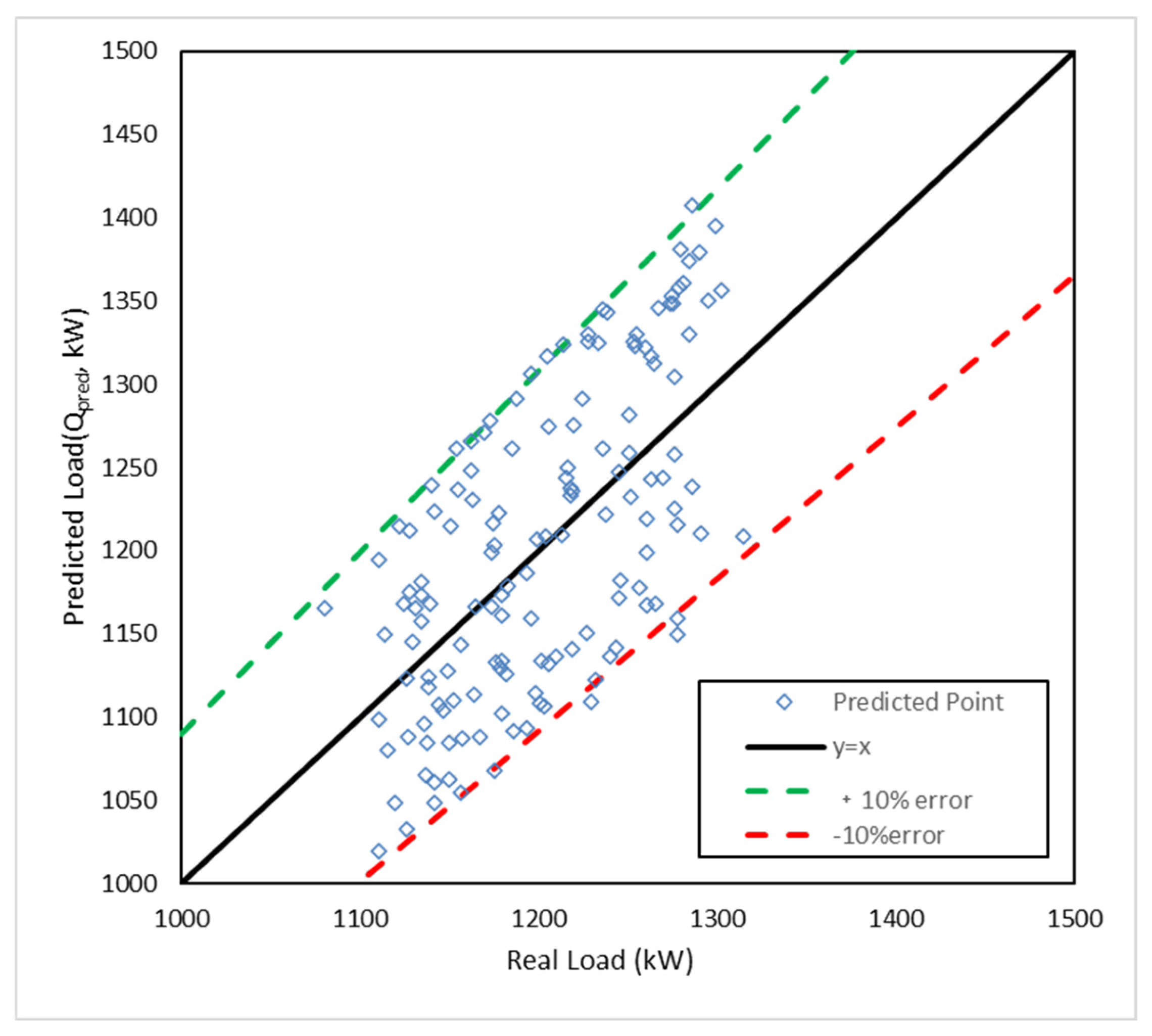Implication: This 10% accuracy is pivotal. While not “perfect,” it is sufficient to place the chillers in the correct efficiency band. The remaining error is easily absorbed by the self-adaptive feedback loop, confirming the hypothesis that extreme precision (e.g., that of a heavy CNN-LSTM) is not always necessary for robust engineering control if the feedback mechanism is sound.