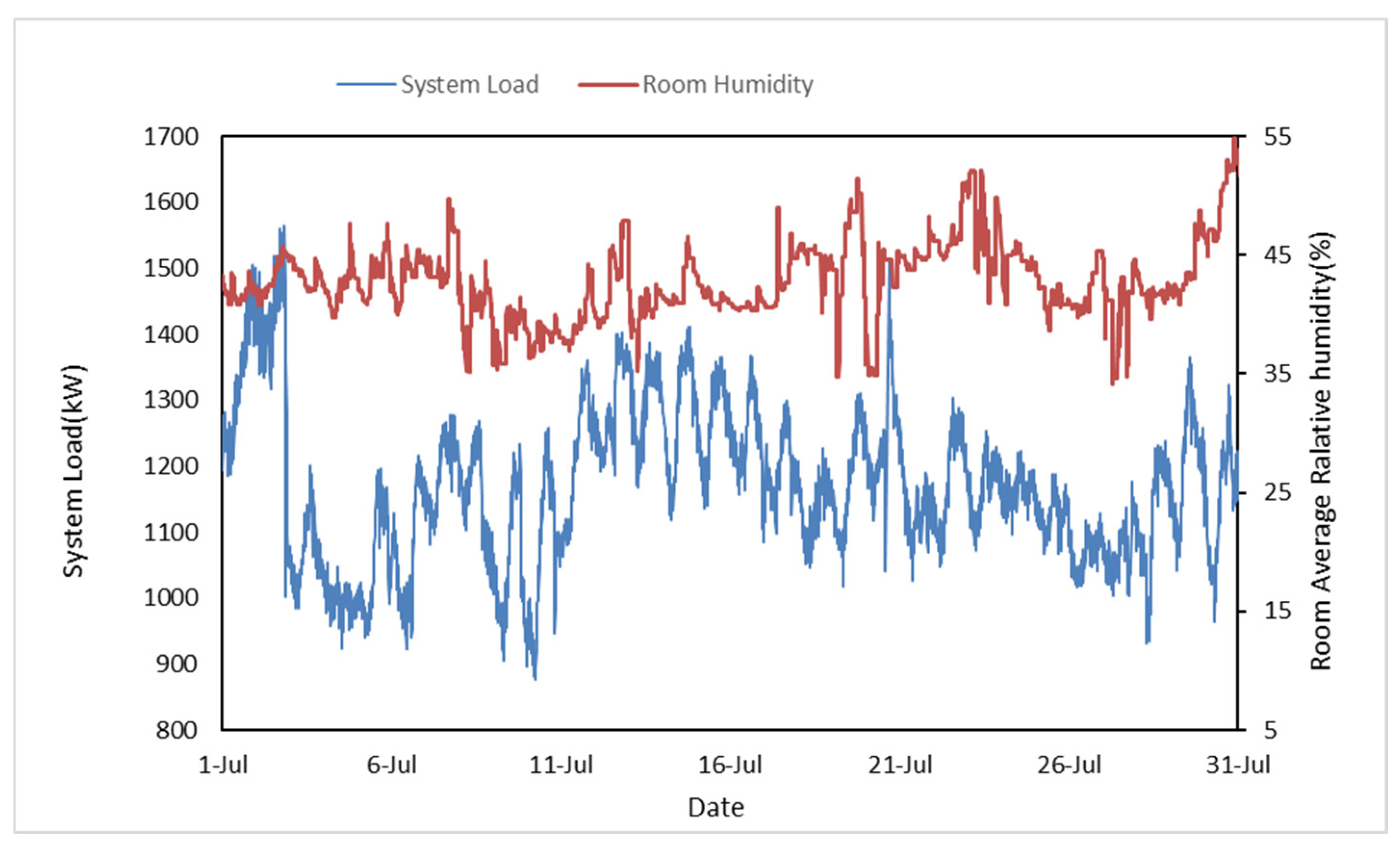 Load Control: Figure 6 confirms that indoor relative humidity was maintained between 30% and 55%. This validates the efficacy of the “Reset Strategy for Supply Temperature” strategy in the feedback loop. Even during high outdoor humidity events (