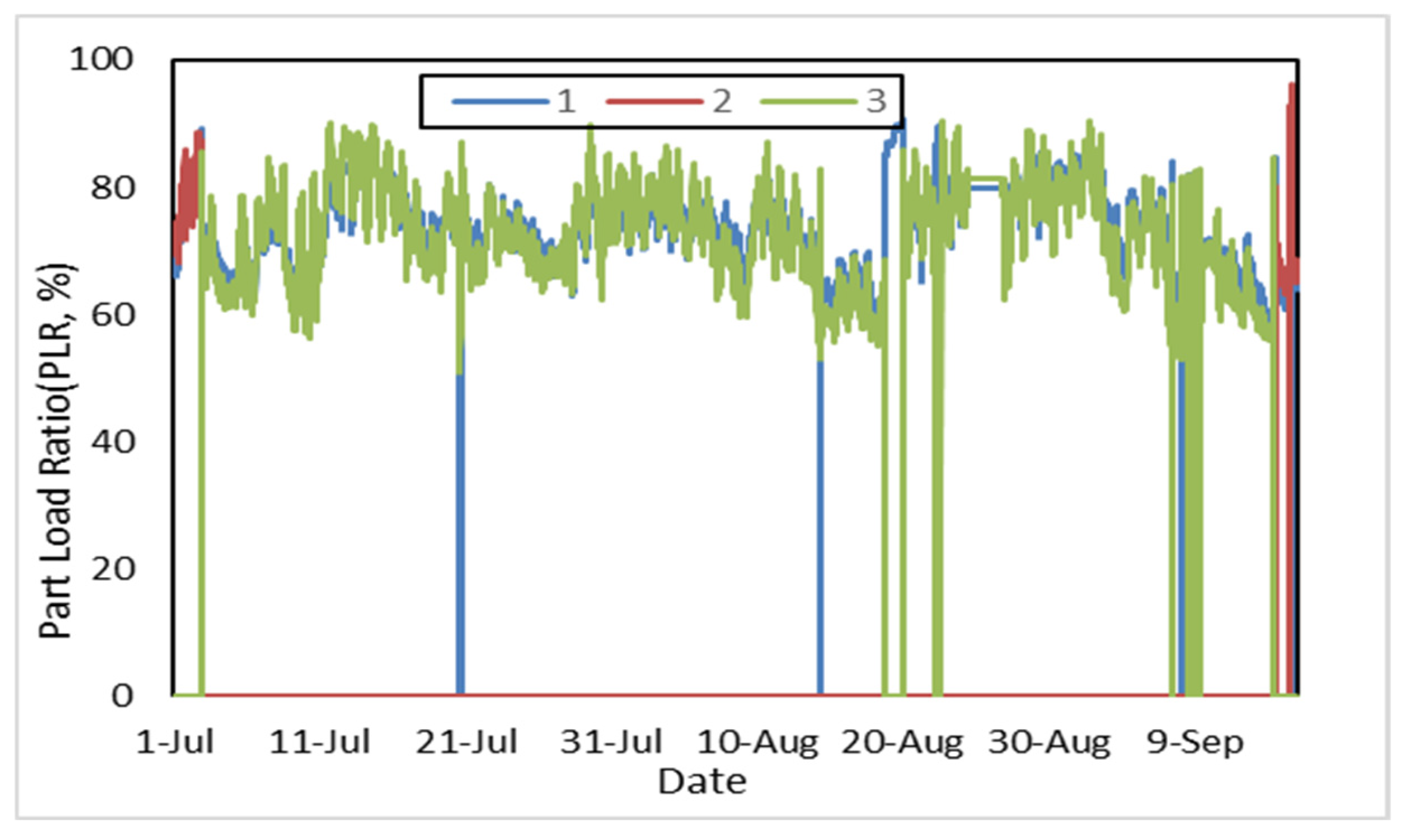 Predictive Control: At the top of each hour, the predictive model utilizes historical and forecasted weather data to predict the aggregate building thermal load () for the next control horizon. Based on , the optimal number of heat pump units () and their target Partial Load Ratio () are determined. This step is an optimization problem aimed at maximizing the aggregate Coefficient of Performance (COP) of the chiller group.