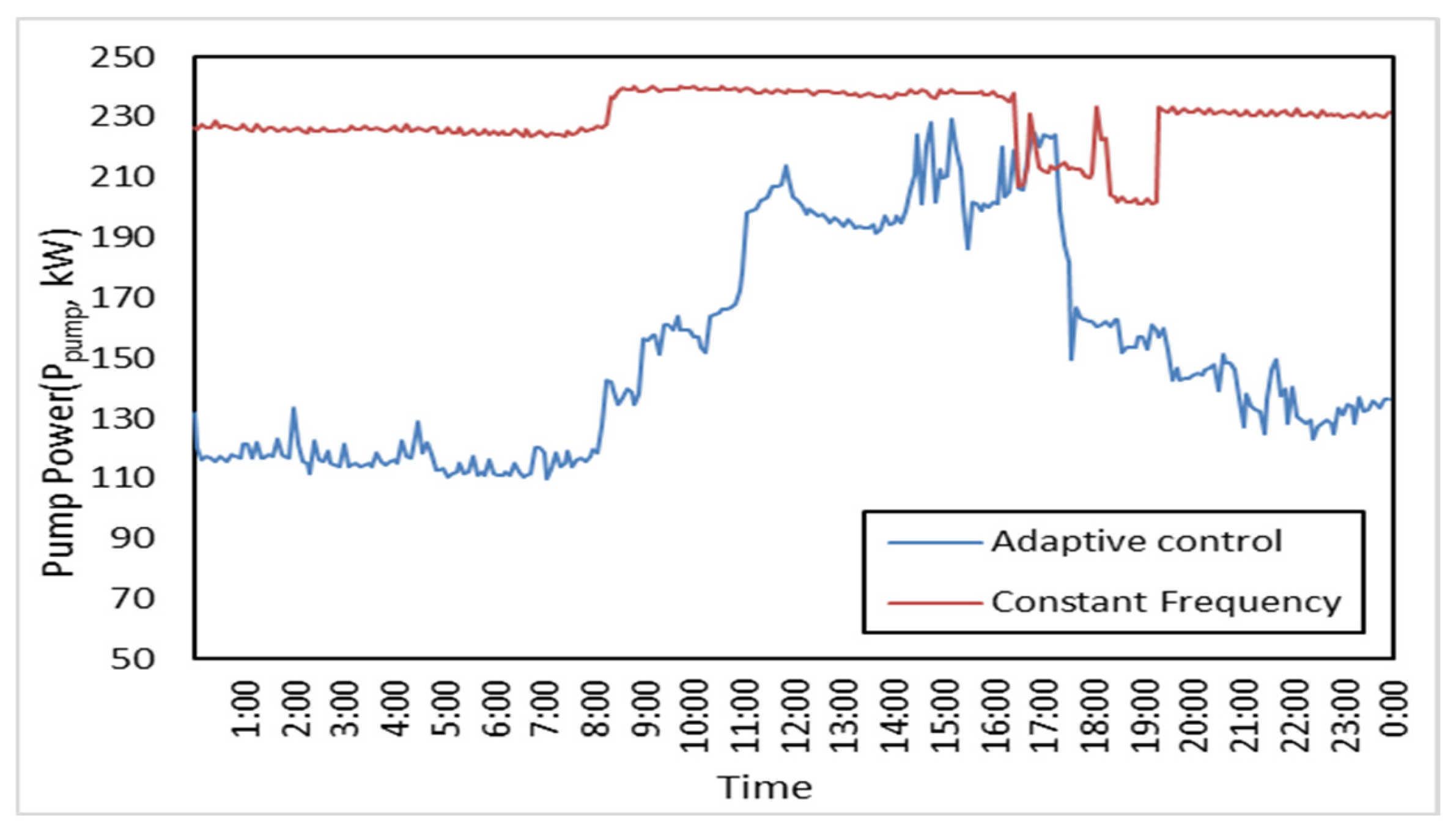 Figure 9 indicates a 33% reduction in pumping energy compared to constant-speed operation.