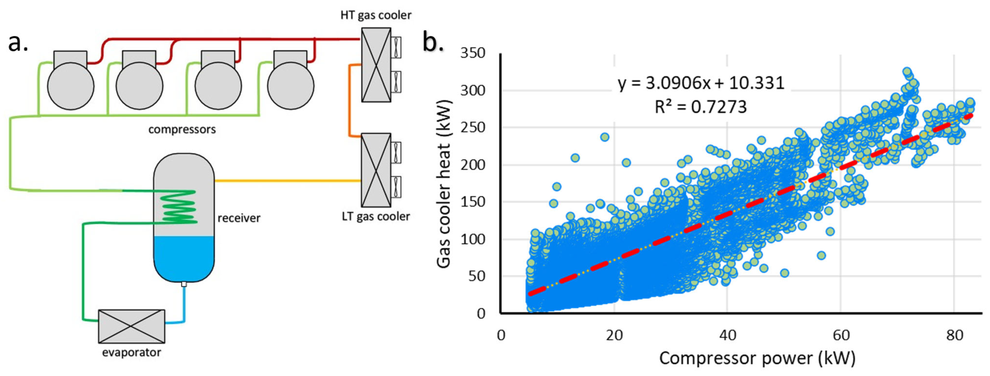 - Sazon, T.A.S.; Zhang, Q.; Nikpey, H. Development of a surrogate model of a trans-critical CO2 heat pump for use in operations optimization using an artificial neural network. In IOP Conference Series: Materials Science and Engineering; IOP Publishing: Bristol, UK, 2023; Volume 1294. [Google Scholar]