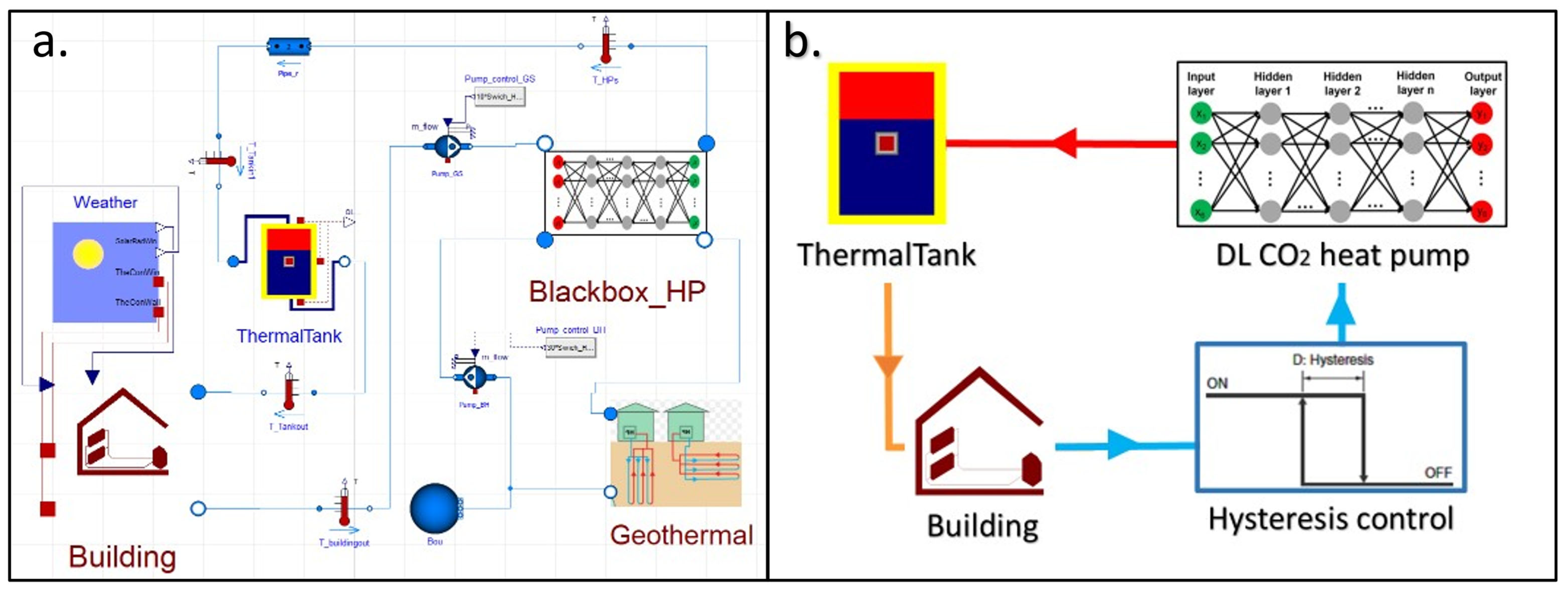 - Song, G.; Zhang, Q.; Nord, N. Integrating Deep Learning with Modelica for a CO2 Heat Pump System: A Hybrid Modeling Case Study in Oslo. In Proceedings of the Resilient2025, Västerås, Sweden, 23–25 September 2025. [Google Scholar]
