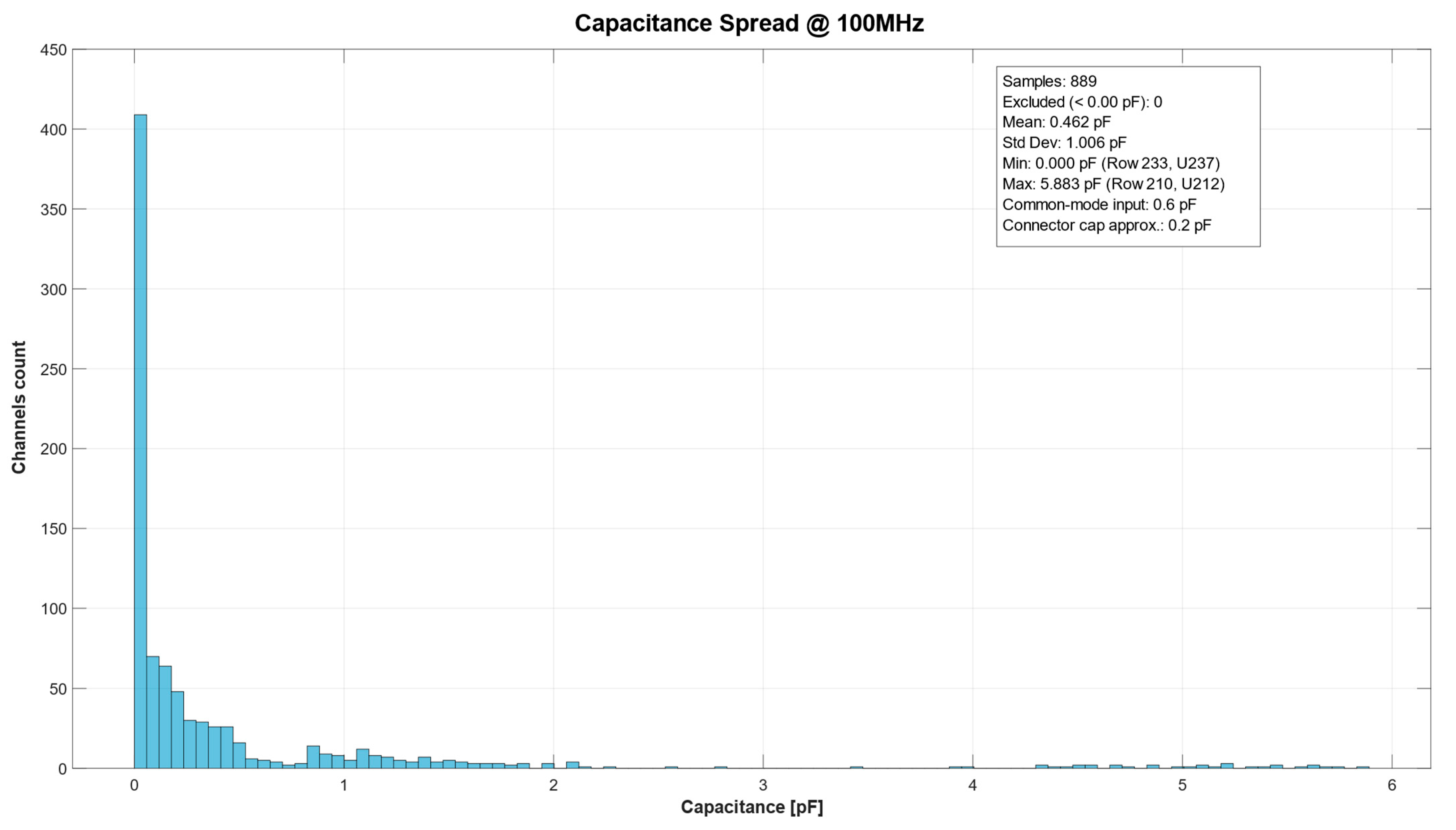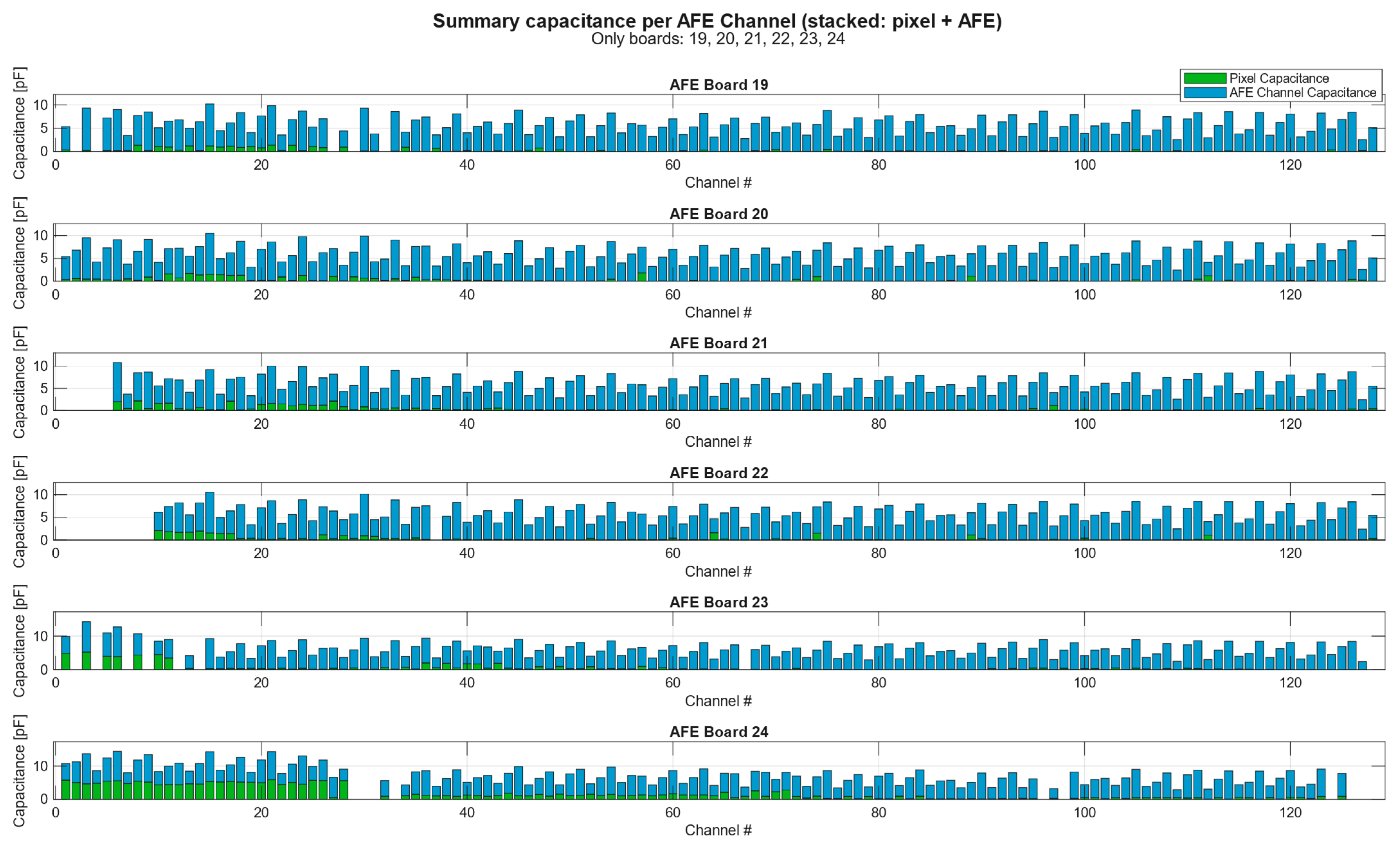 | AFE Board | Average Capacitance [pF] | Minimum Capacitance [pF] | Maximum Capacitance [pF] | Standard Deviation [pF] |