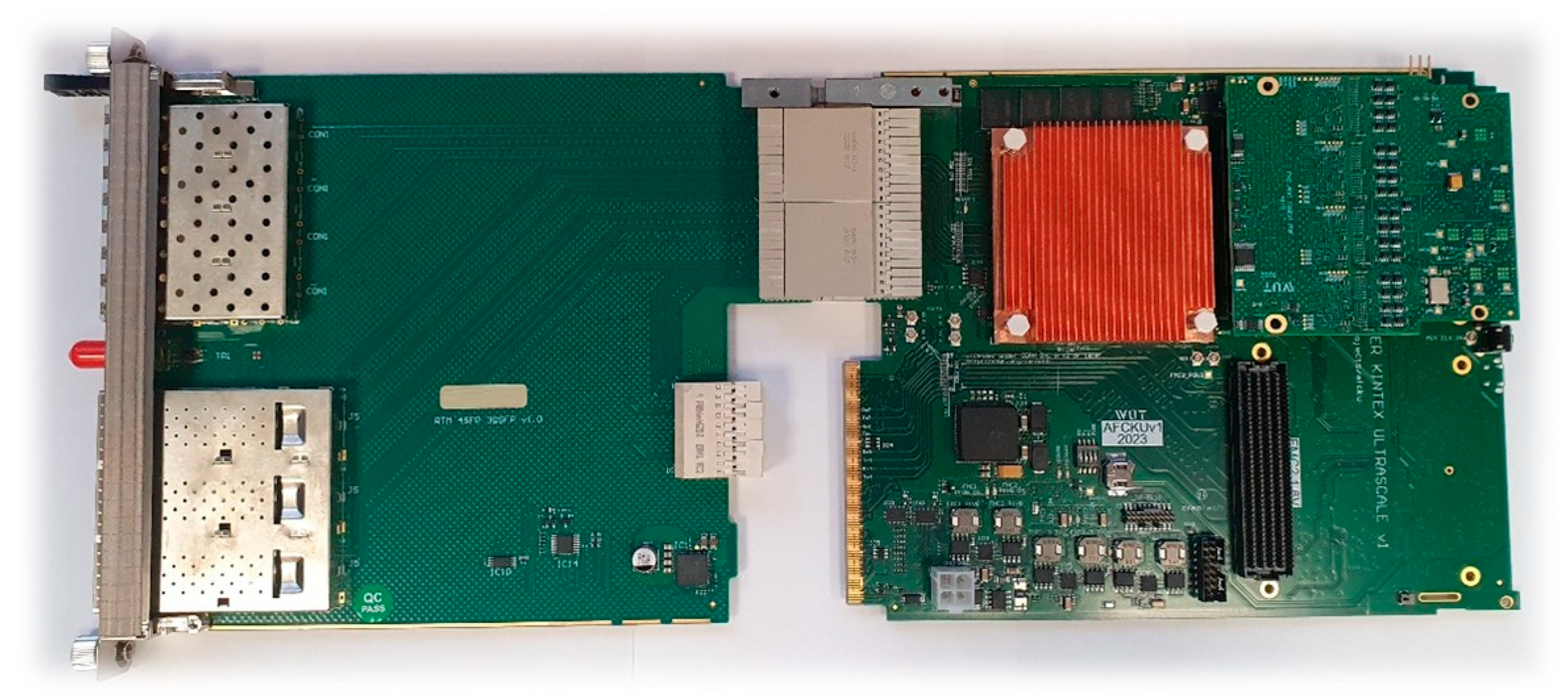 - OpenHardware Repository AMC FMC Carrier AFCZ. Available online: https://ohwr.org/projects/afcz/ (accessed on 30 November 2025).