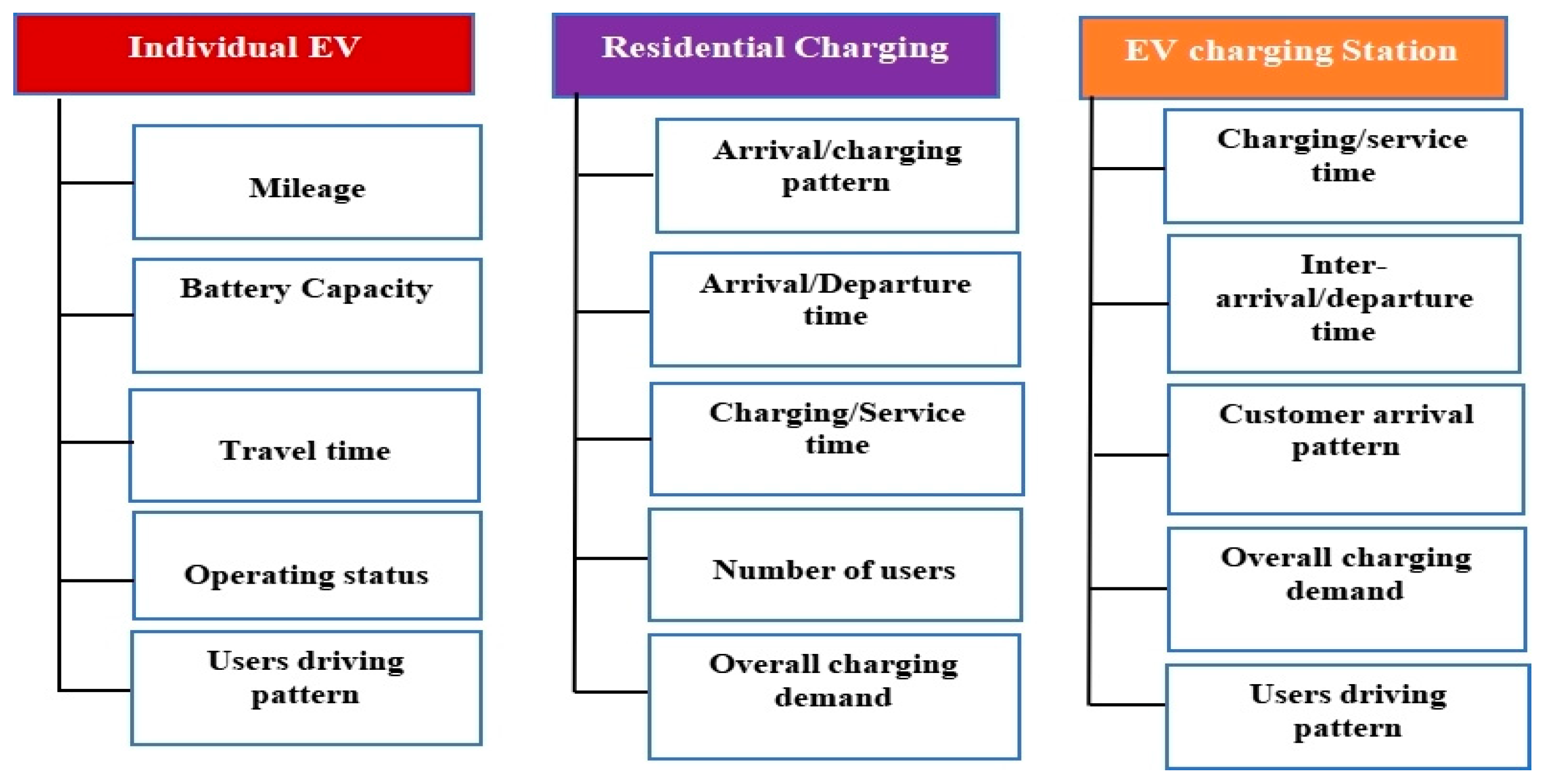 - Most of the work has modeled EV load demand and PV generation in a simplistic and deterministic manner, whereas both should be treated stochastically by considering factors such as EV arrival/departure times, battery degradation, solar irradiance variability, temperature fluctuations, and weather uncertainties. Also, for efficient planning, advanced forecasting methods for EV, wind, and solar demand are necessary.