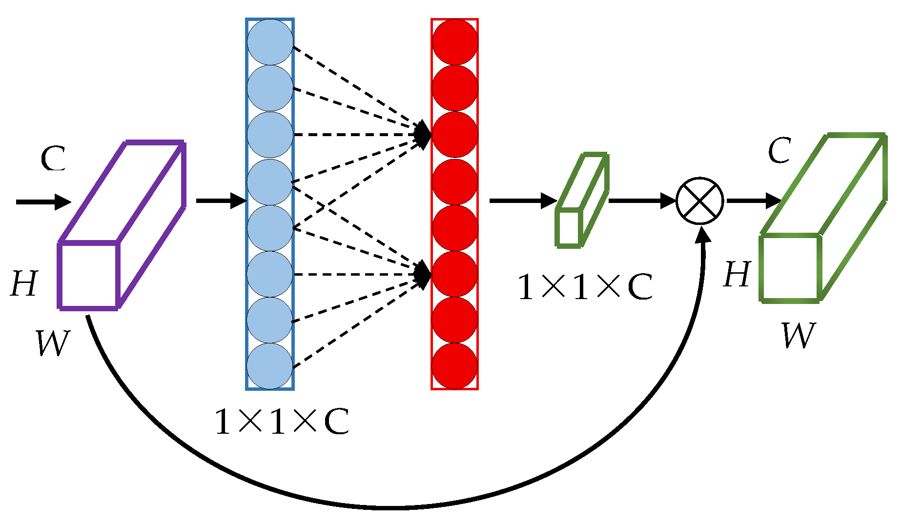 - Wang, Q.; Wu, B.; Zhu, P.; Zuo, L.W.; Hu, Q. ECA-Net, Efficient channel attention for deep convolutional neural networks. In Proceedings of the IEEE/CVF Conference on Computer Vision and Pattern Recognition; IEEE: Piscataway, NJ, USA, 2020; pp. 11534–11542. [Google Scholar]