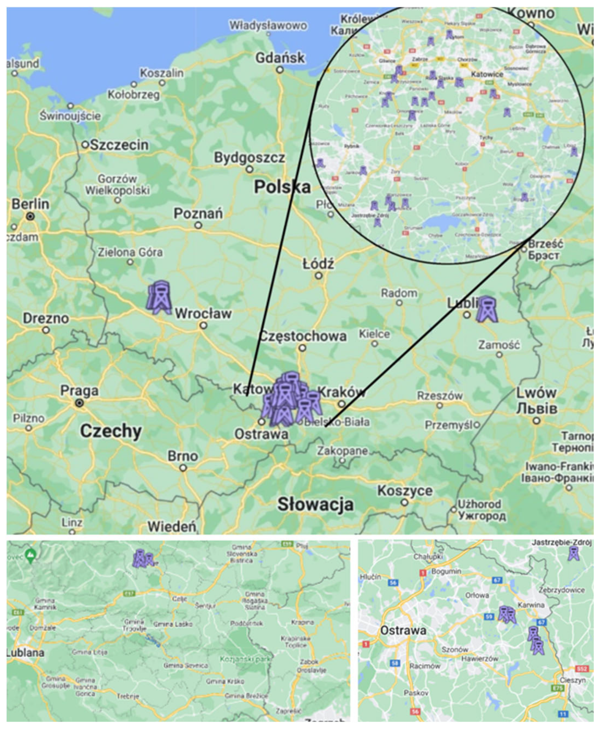 13]. In Poland alone, approximately 228 active or non-decommissioned shafts have been inventoried and shown in